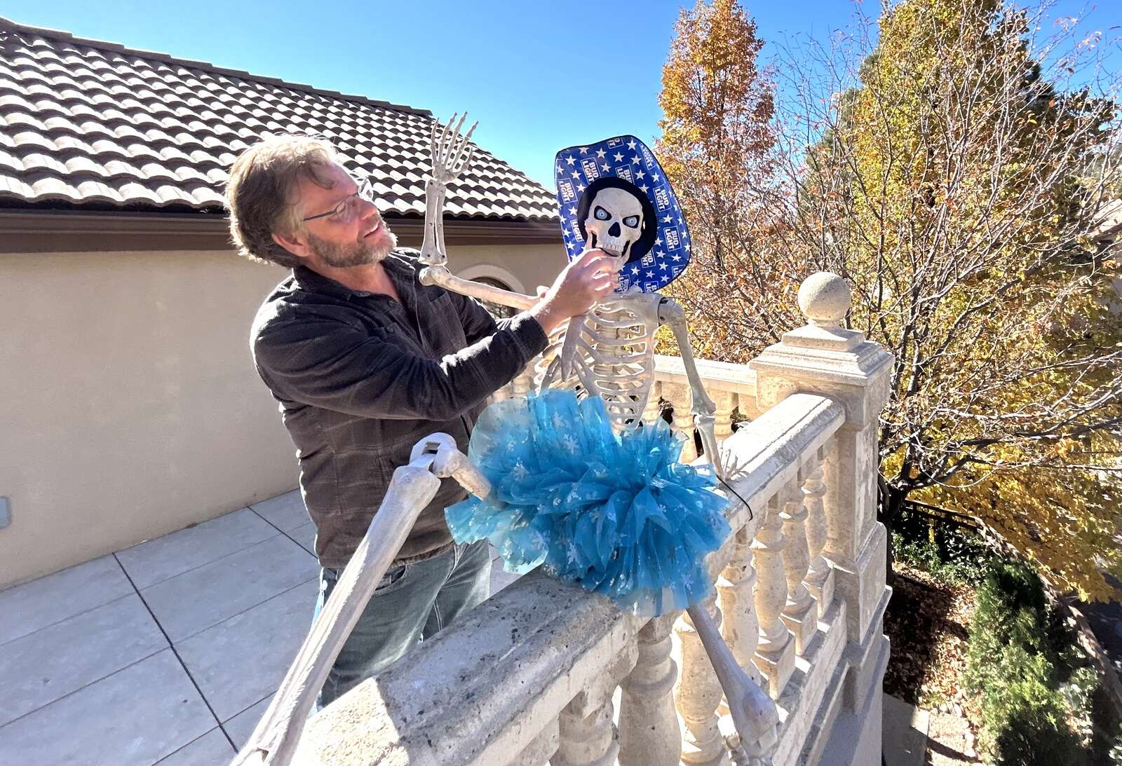 Durango resident Mark Morgan makes a final adjustment to a Halloween decoration Thursday at his home along north Main Avenue. Check out Sunday’s print edition of The Durango Herald for reader-submitted photos with more Halloween decorations. (Shane Benjamin/Durango Herald)