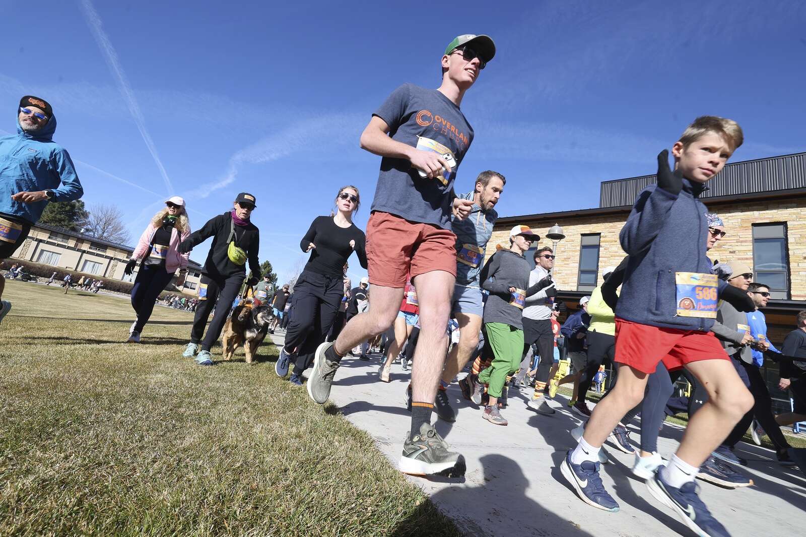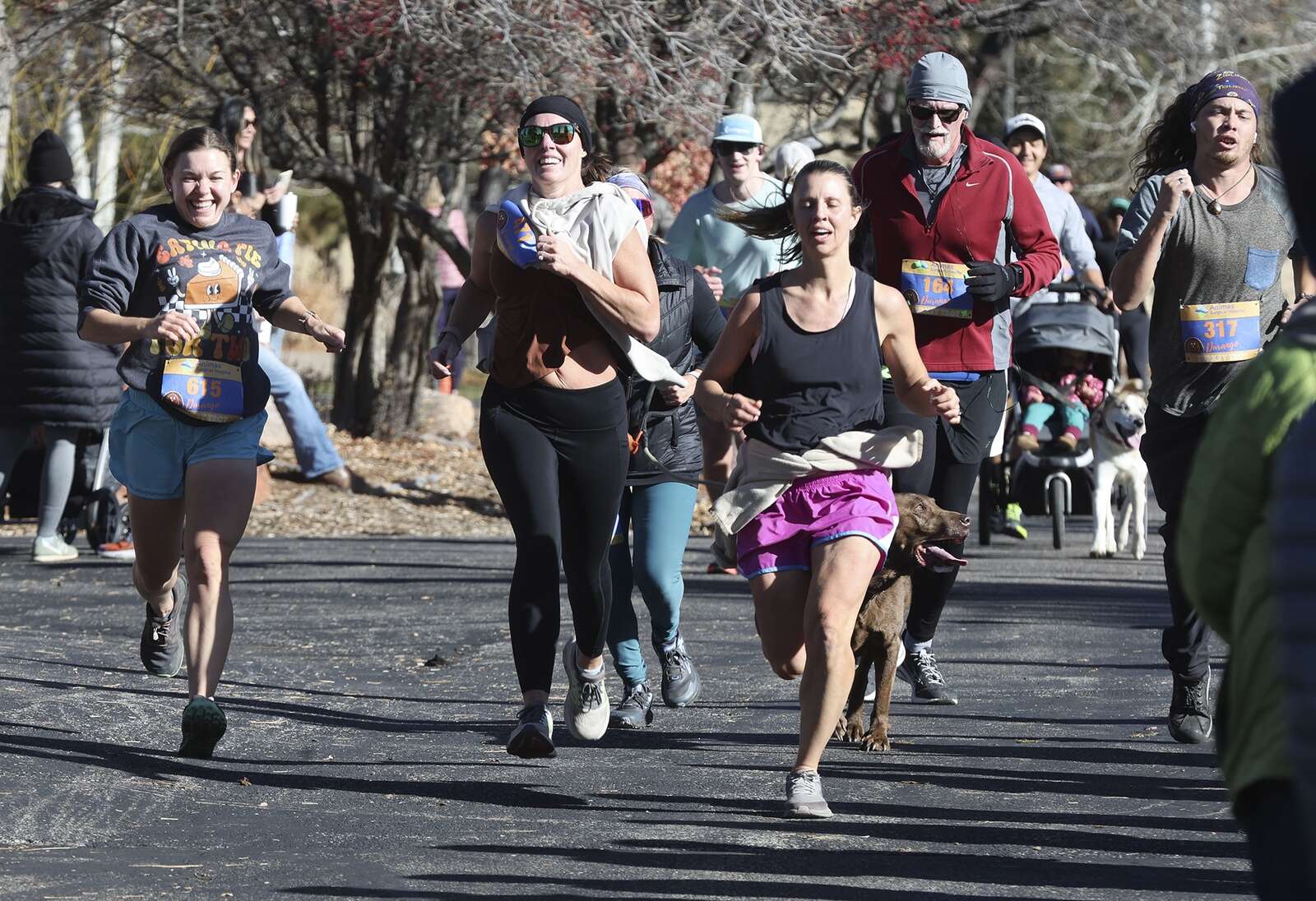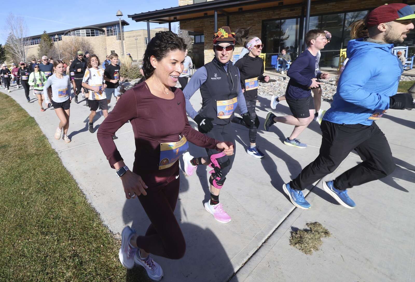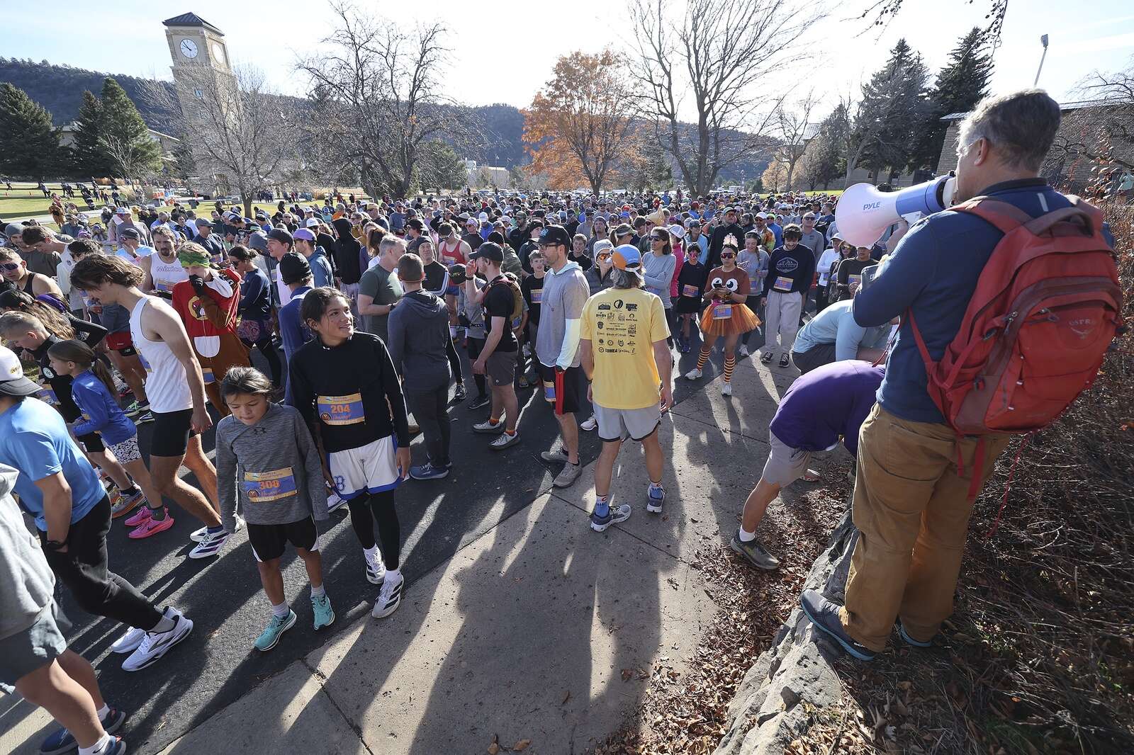 Runners take off at the start of the Durango Turkey Trot 5-mile race on Thursday at Fort Lewis College. (Jerry McBride/Durango Herald)
