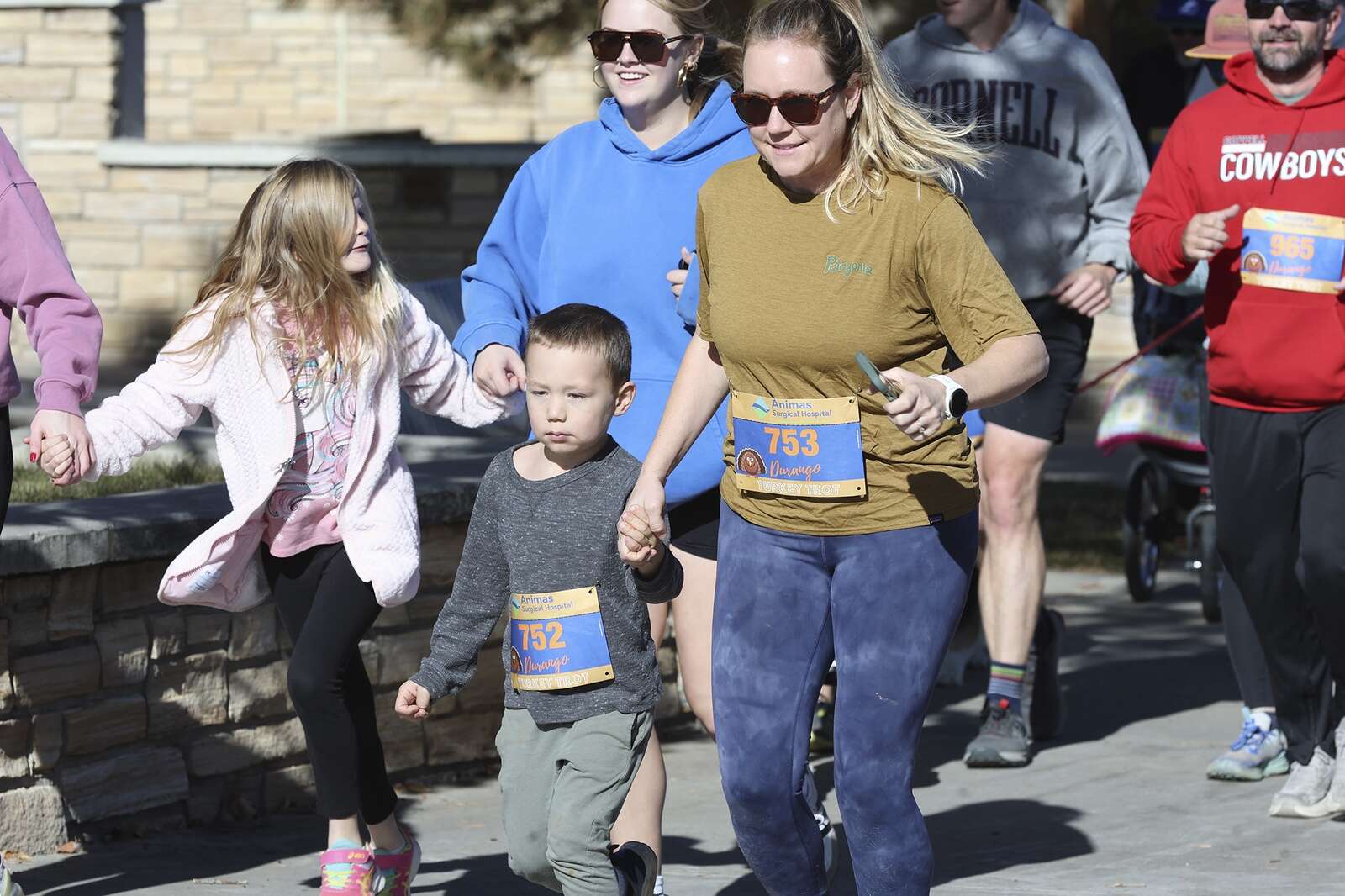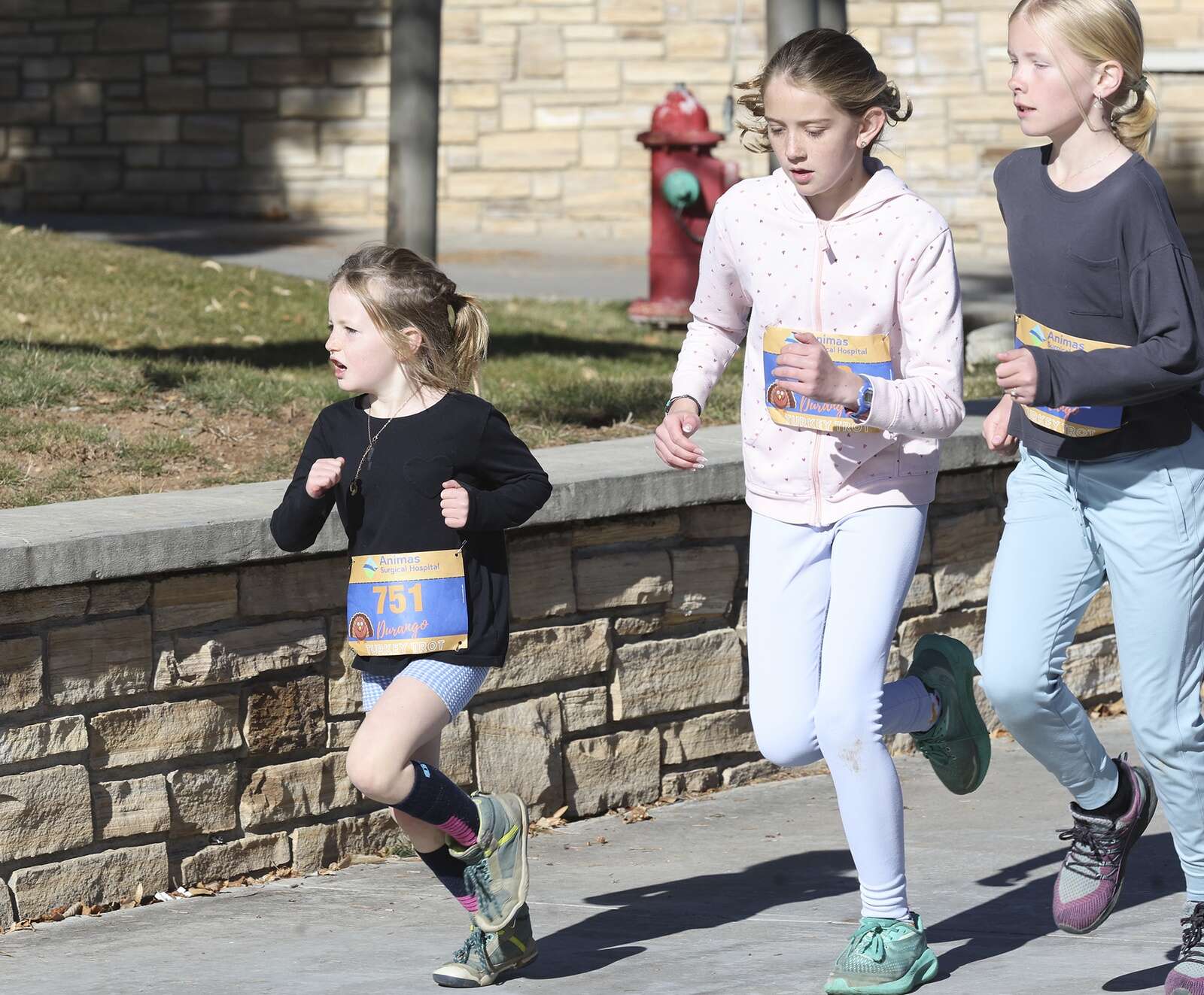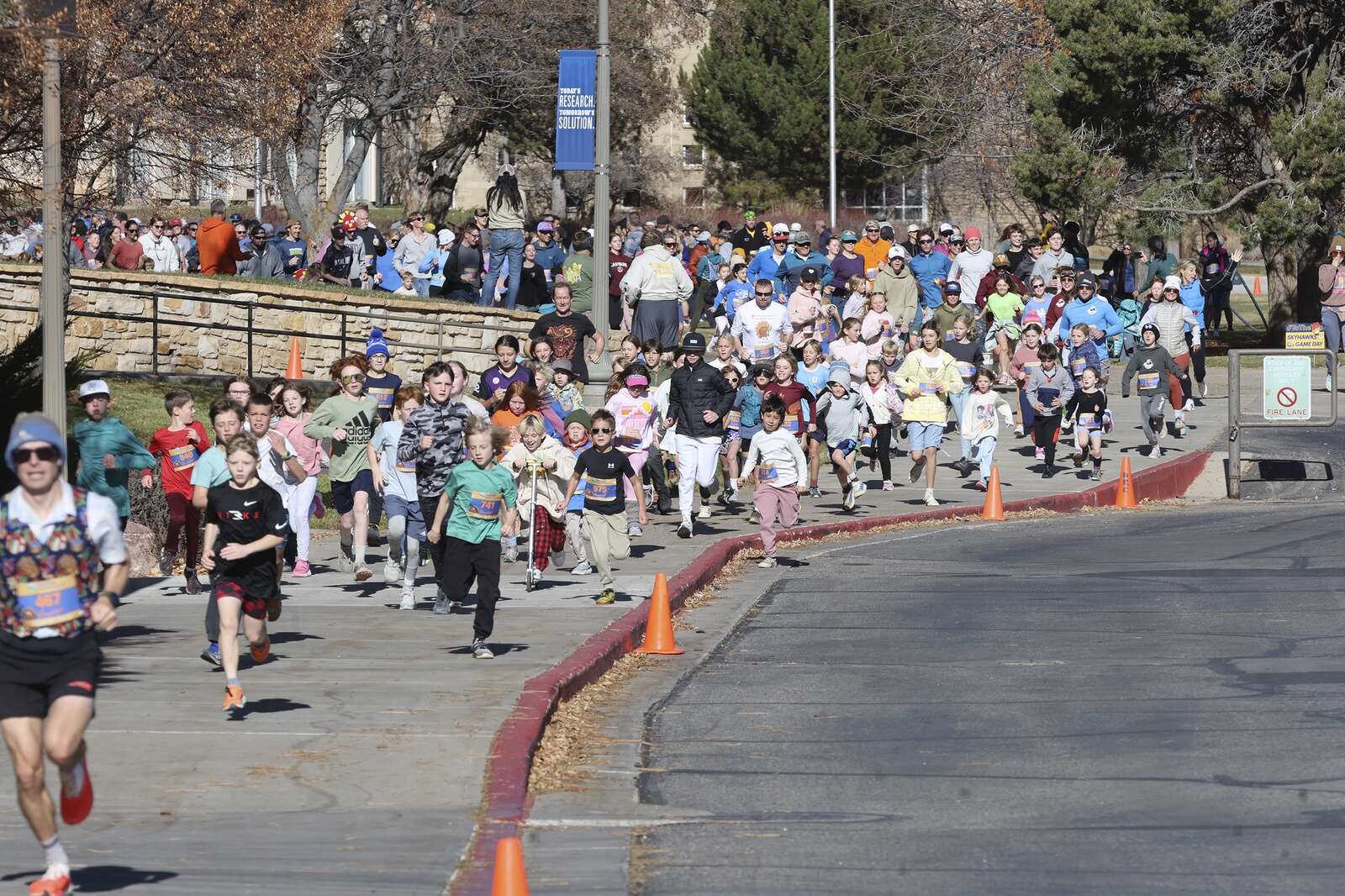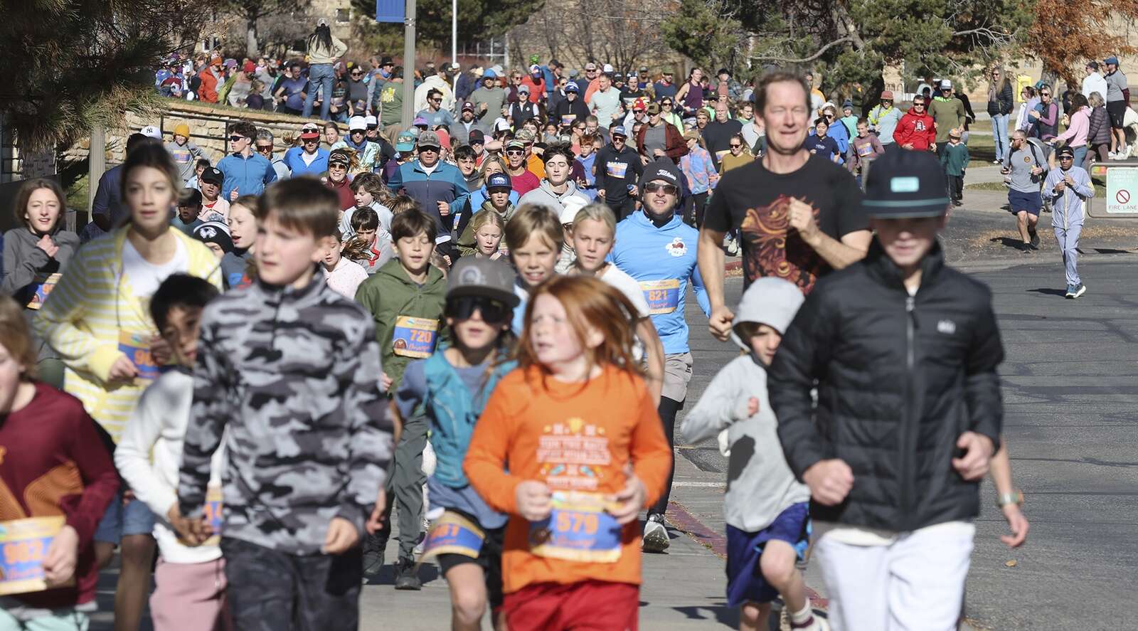 Runners take off at the start of the Durango Turkey Trot 1-mile kids fun run on Thursday at Fort Lewis College. (Jerry McBride/Durango Herald)