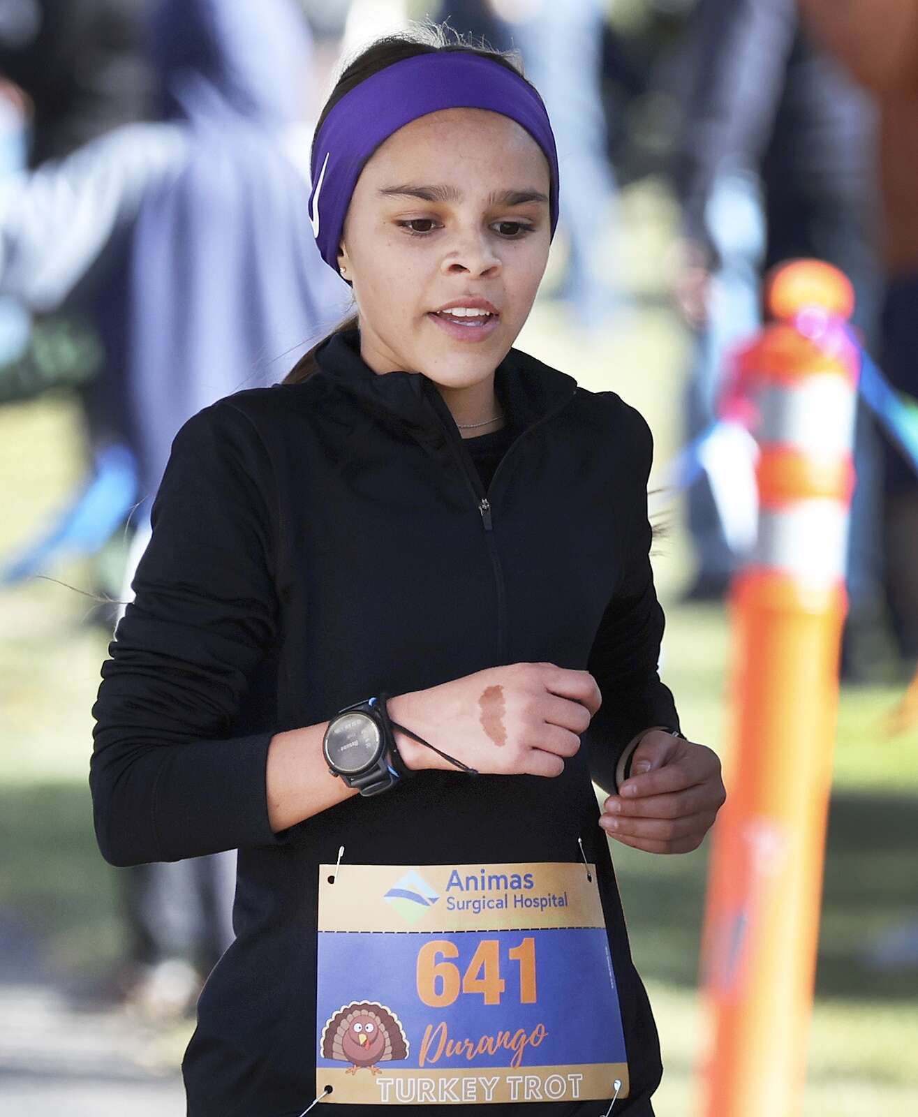 Zia Fadil places second in the women's Durango Turkey Trot 5-mile race on Thursday at Fort Lewis College. (Jerry McBride/Durango Herald)