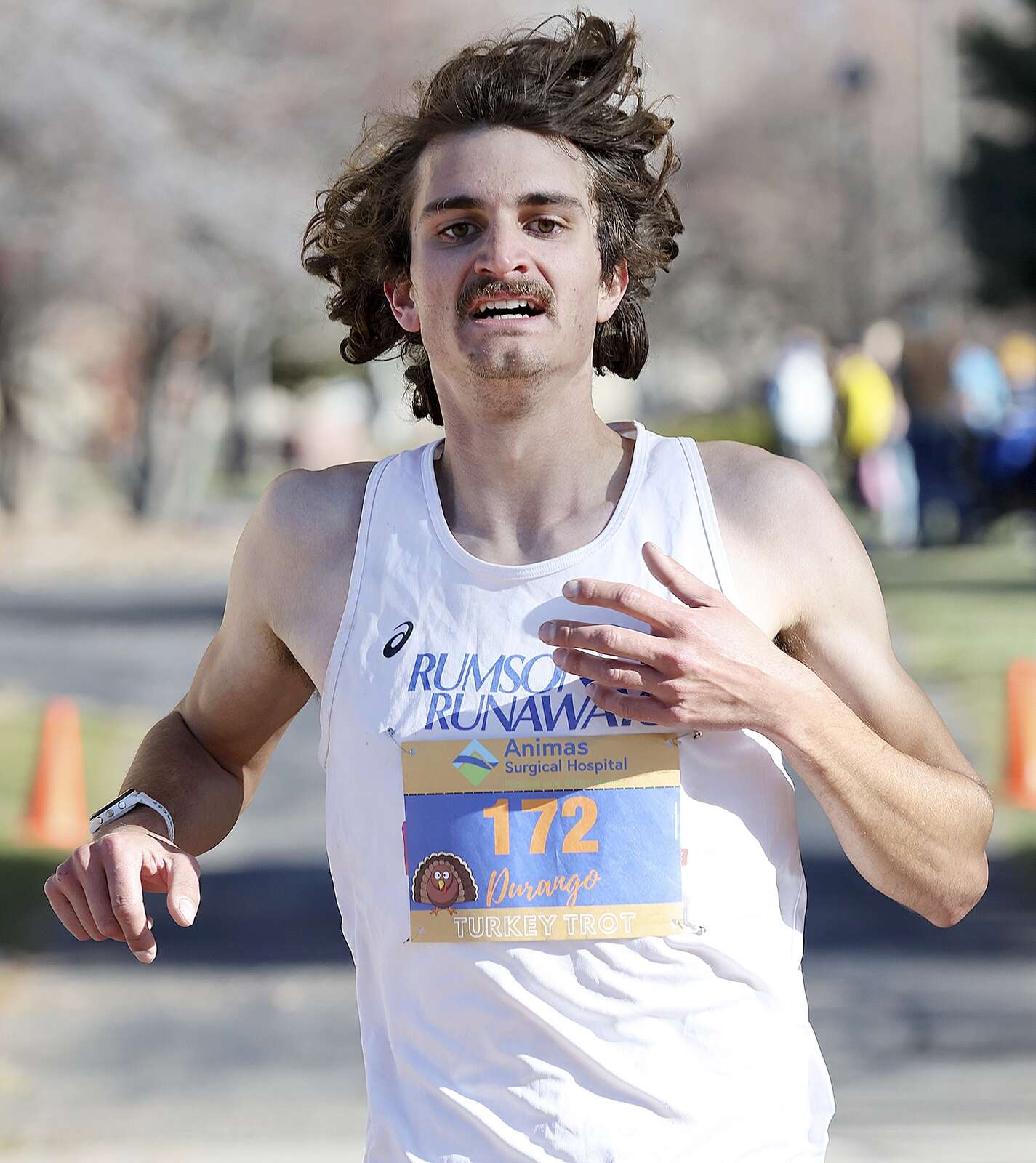 Clayton Wolfe places second in the Durango Turkey Trot 5-mile race on Thursday at Fort Lewis College. (Jerry McBride/Durango Herald)