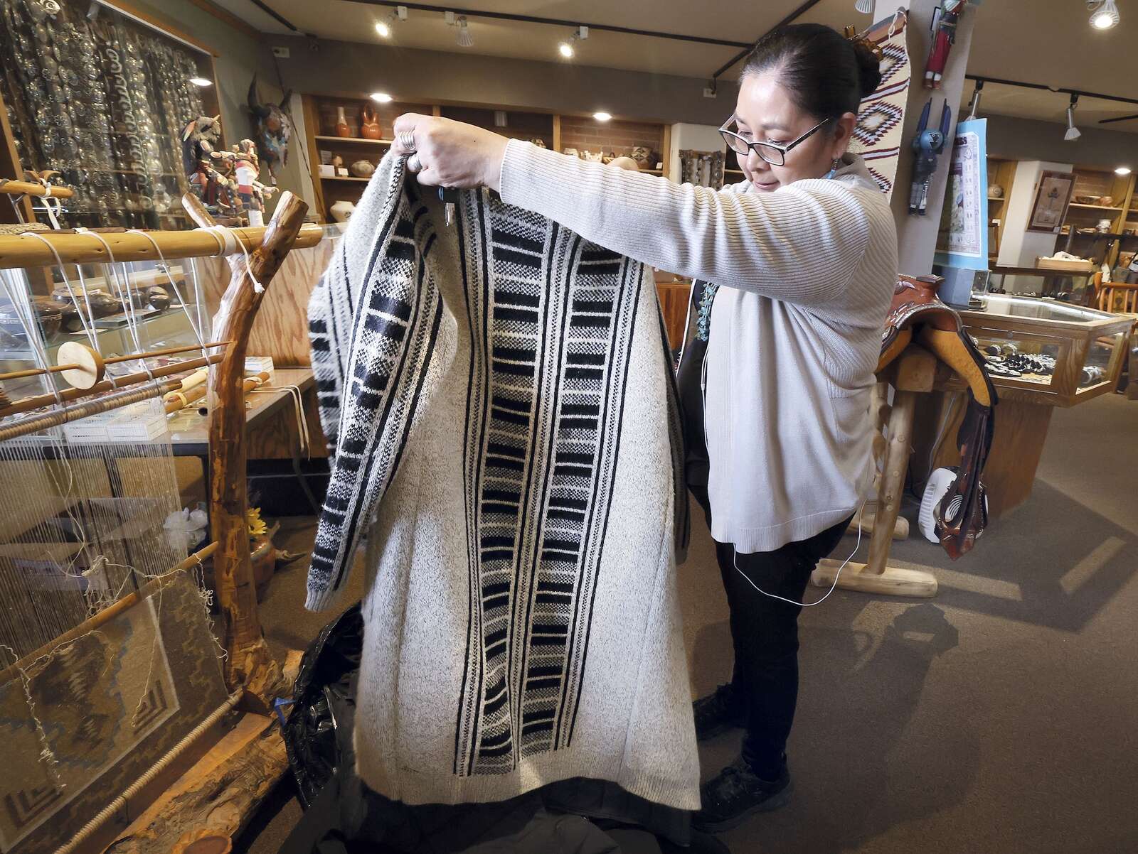 Paulita Lomaomvaya, with Toh-Atin Gallery, pulls a coat out of a bag that was dropped off Tuesday for the gallery’s Annual Food and Clothing Drive to help Dine’/Navajo families in need during the winter. New or gently used warm clothing for all ages, nonperishable food items and camping gear can be dropped off through Thursday in the gallery’s parking lot at 142 W. Ninth St. and Narrow Gauge Avenue between the hours of 9 a.m. to 5 p.m. (Jerry McBride/Durango Herald)