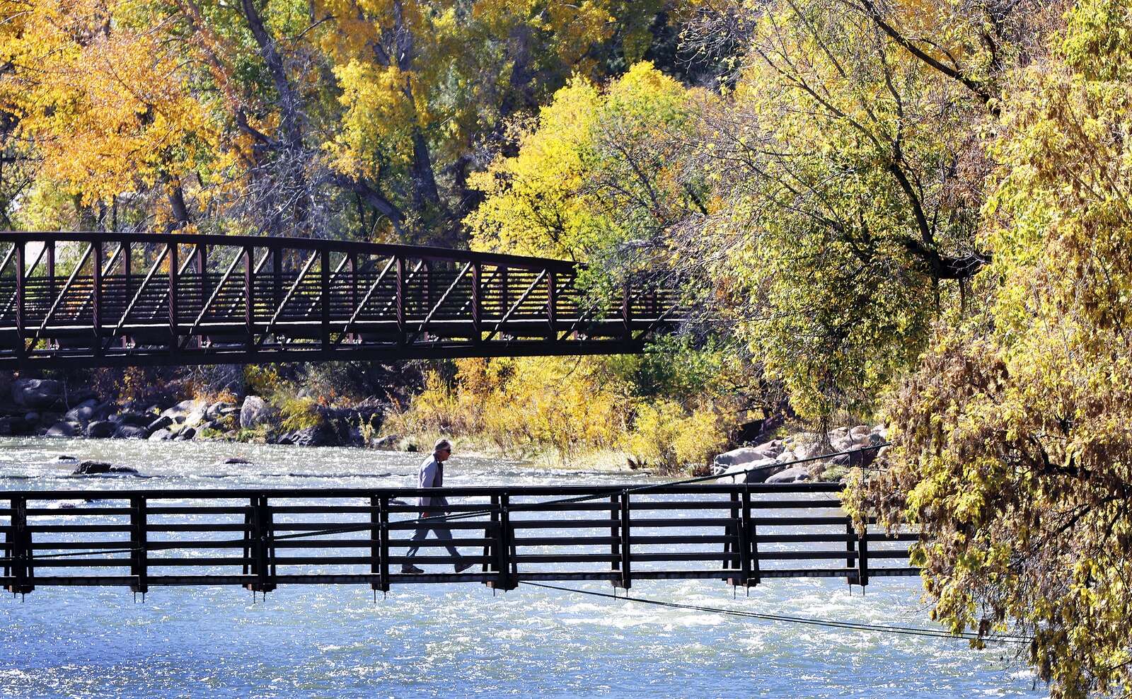 Warm temperatures, sunshine and fall colors make for pleasant walking conditions Tuesday along the Animas River in Durango. The National Weather Service calls for mostly sunny skies Wednesday and a chance of showers on Thursday. (Jerry McBride/Durango Herald)