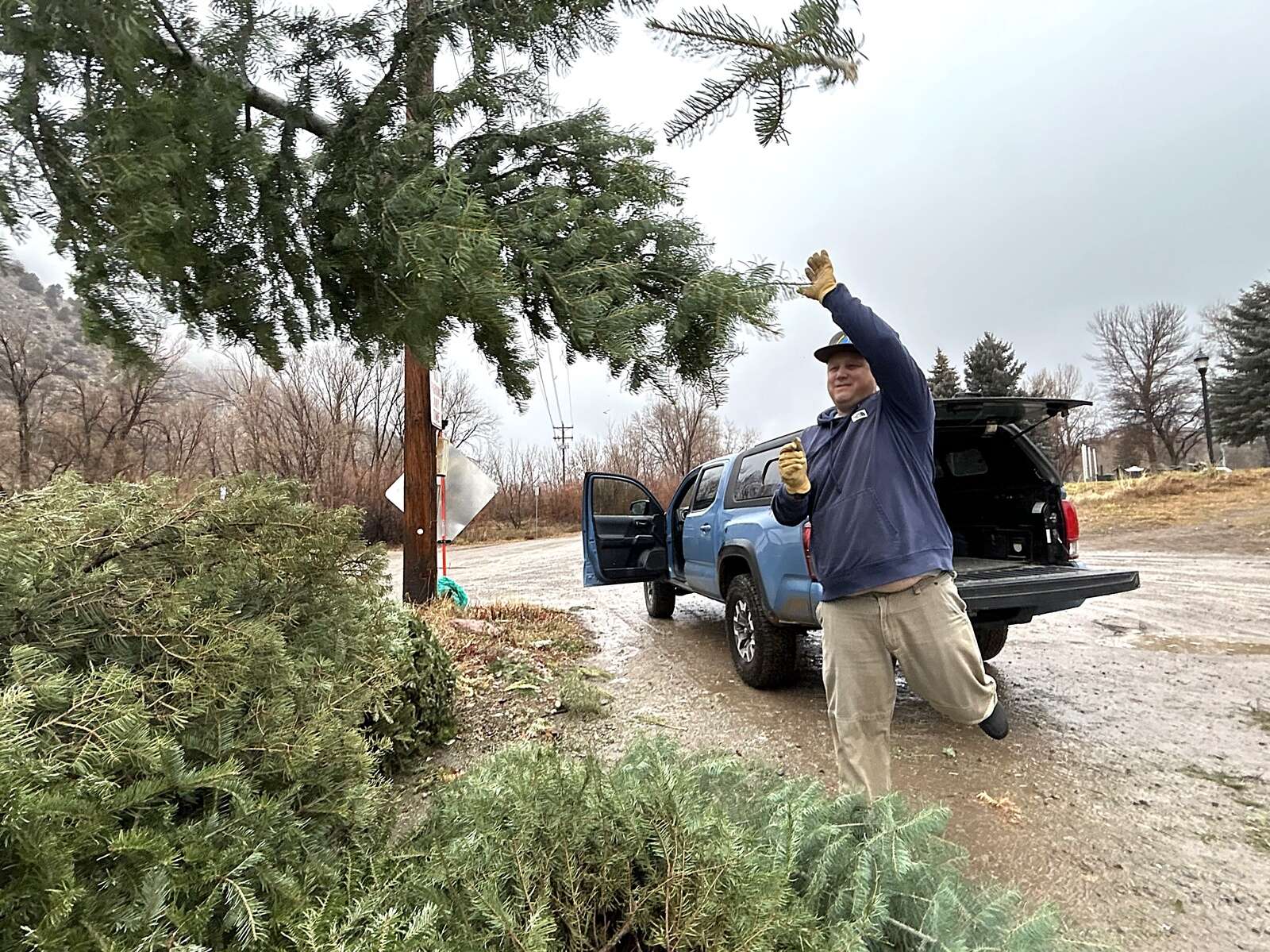 Matt Brandt of Durango tosses his Christmas tree – or Hanukkah bush as his family calls it, because his mother is Catholic and his father is Jewish – on Thursday at the city of Durango’s drop-off location at Santa Rita Park, 149 South Camino del Rio. Christmas tree recycling is available through Jan. 31. Natural trees must be free of ornaments, tinsel, bases, and metal screws and nails. (Shane Benjamin/Durango Herald)
