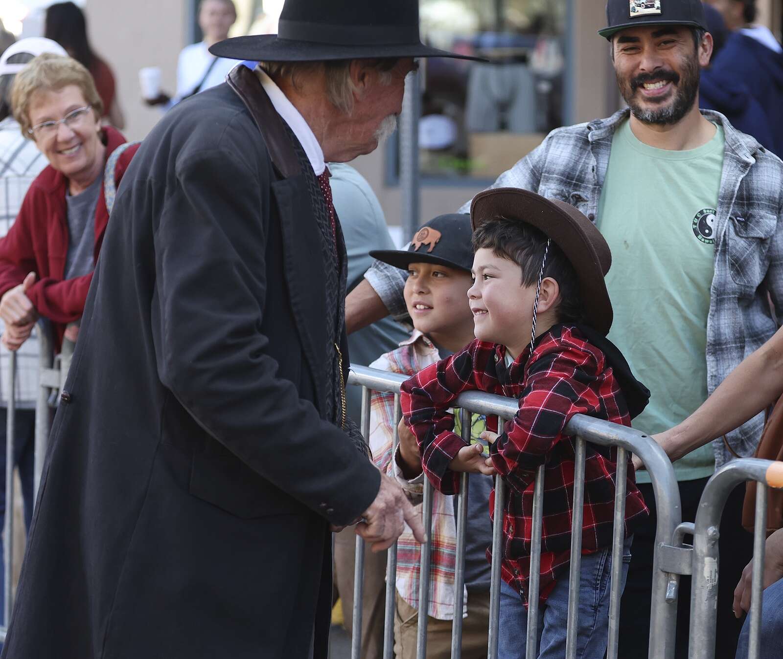 Rylo Sjoberg, 4, and his brother Koa, 8, enjoy the Durango Cowboy Gathering Parade on Saturday on Main Avenue in downtown Durango. (Jerry McBride/Durango Herald)