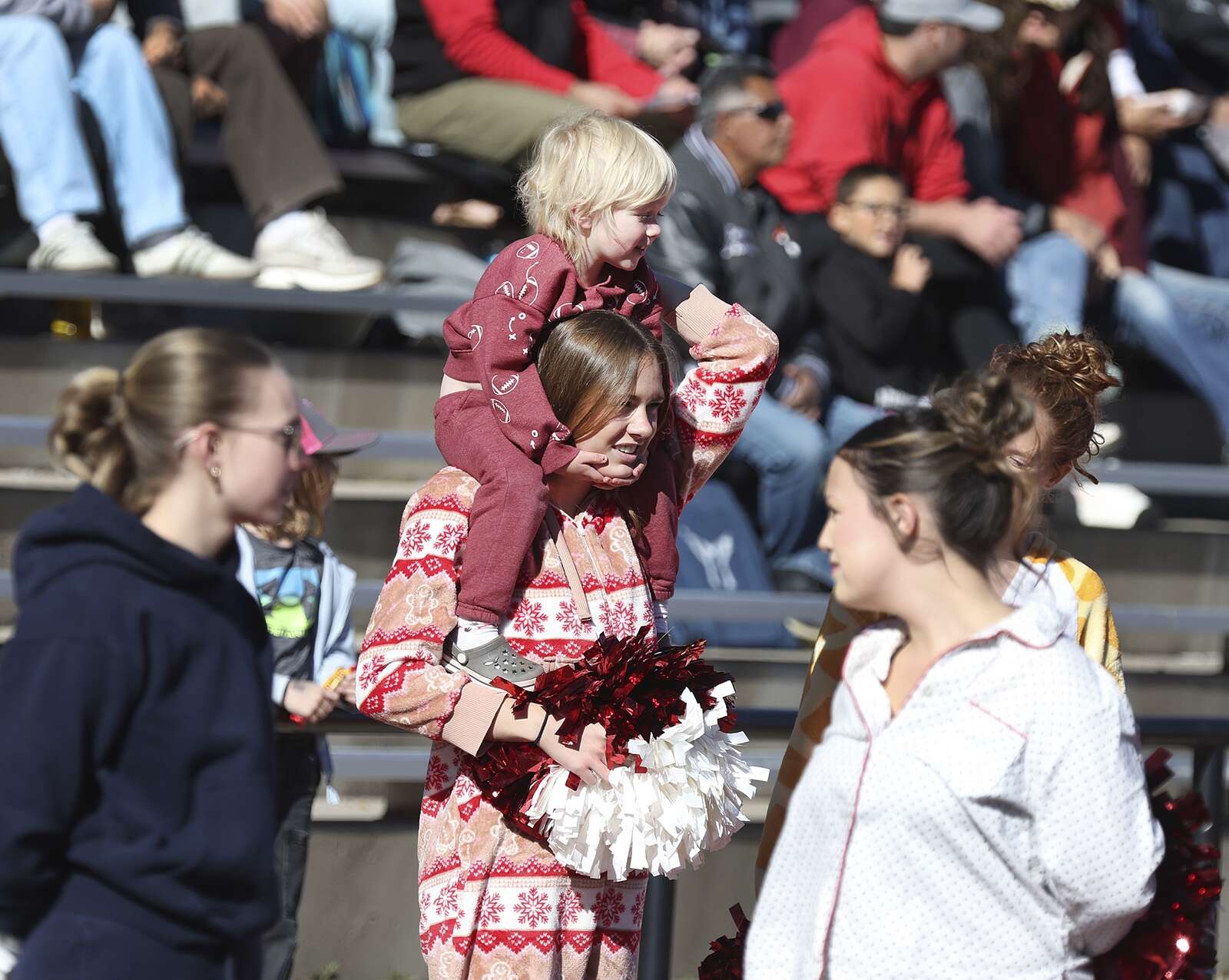 Durango High School cheerleaders cheer during the Heritage High School state quarterfinals playoff game on Saturday at DHS. (Jerry McBride/Durango Herald)