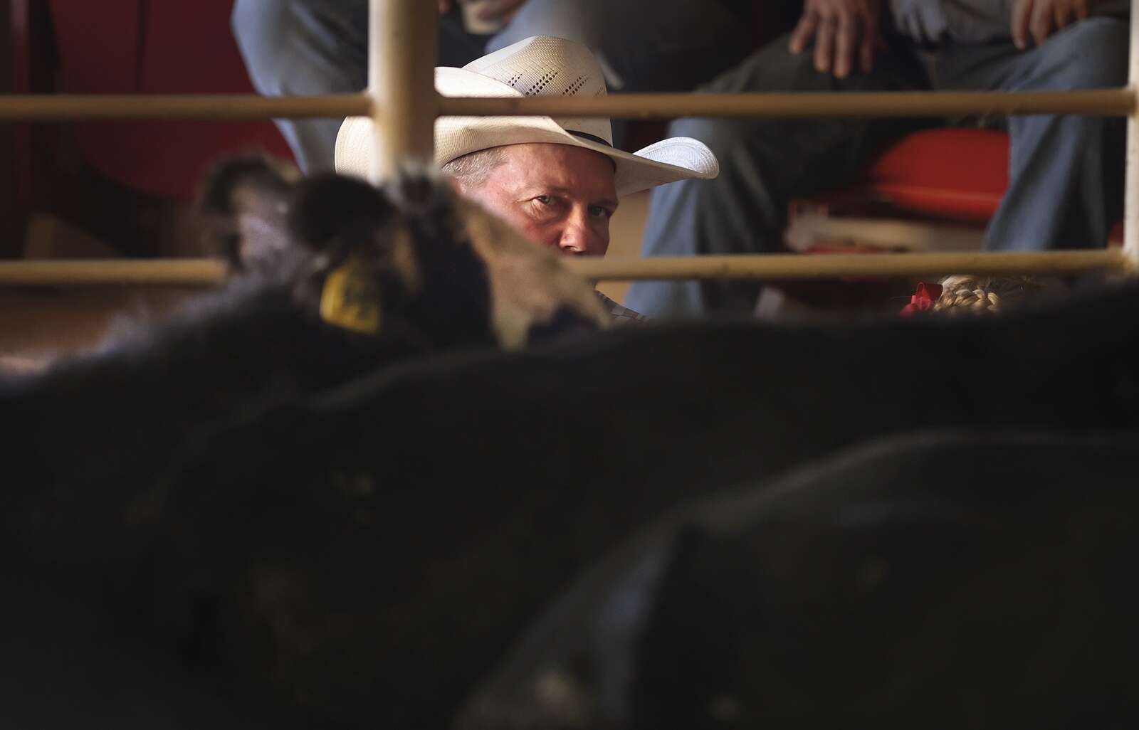 Tom Conway watches the High Country Cattle Auction on Sept. 23 in Breen southwest of Durango. (Jerry McBride/Durango Herald)