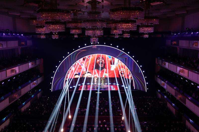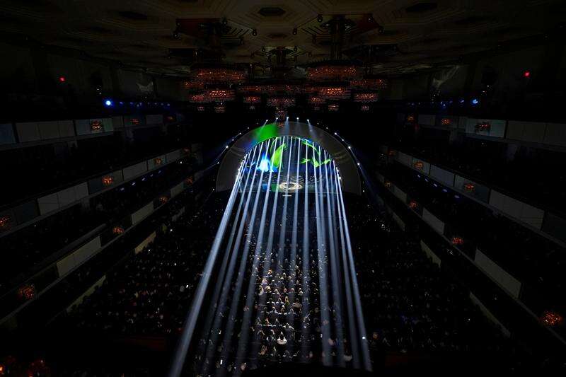 Singer Andrea Bocelli performs during the draw for the 2026 soccer World Cup at the Kennedy Center in Washington, Friday, Dec. 5, 2025. (AP Photo/Alex Brandon)