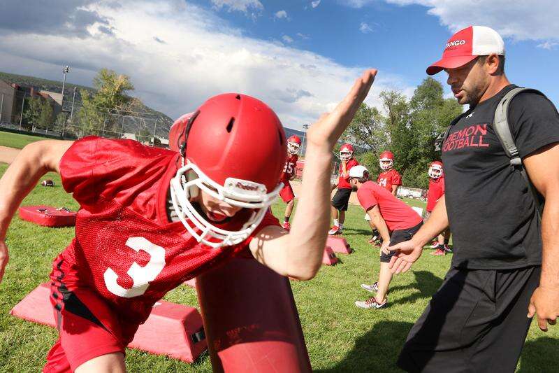 Durango High School head football coach David Vogt during practice on Aug. 15, as the Demons build upon a 2015 season in which the it reached the Class 4A quarterfinals. This year, the Demons will compete in 3A. Photo by Jerry McBride/Durango Herald