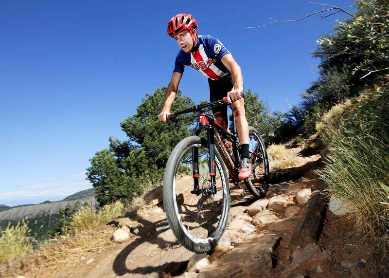 Durango’s Howard Grotts, a 2016 Olympian, recently rides on Rim Trail, a trail he has ridden many years growing up in the area.