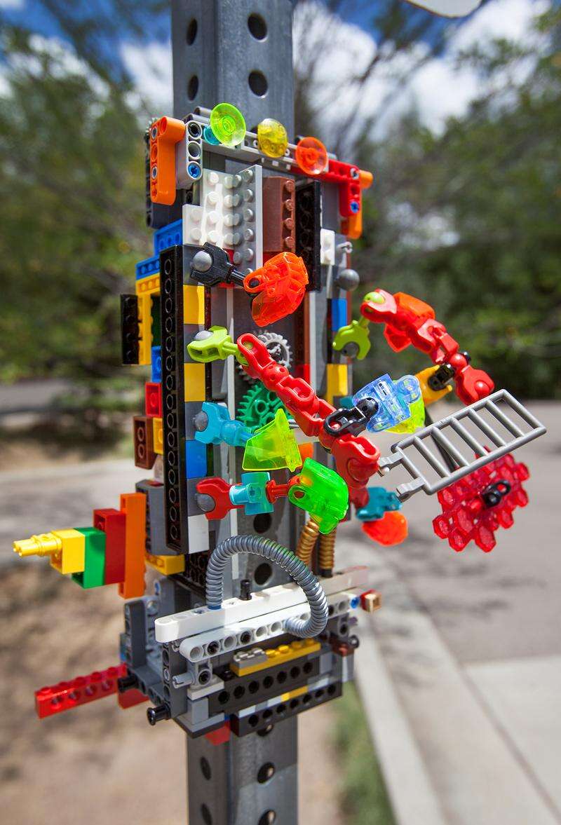 An intricate Lego creation by Sam Bridgham on Aug. 1 on a sign pole next to the parking lot of Animas Brewing Co. on East Second Avenue. Photo by Shaun Stanley/Durango Herald