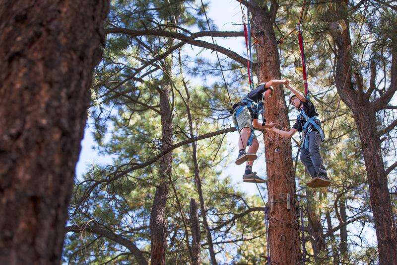 Animas High School ninth-grade students negotiate a rope course at On The Edge Productions’ rope course on Sept. 7. The exercise is designed to build trust and collaboration among participants. Photo by Shaun Stanley/Durango Herald