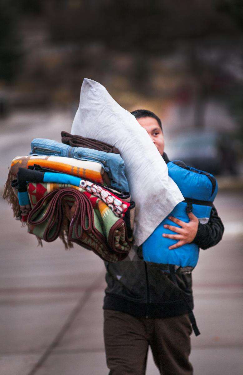 Fort Lewis College senior Justin Succo carries supplies for a friend who is participating in a caravan to the Standing Rock Sioux Reservation to support protesters who oppose the Dakota Access Pipeline. The caravan left Durango on Nov. 22. Photo by Shaun Stanley/Durango Herald