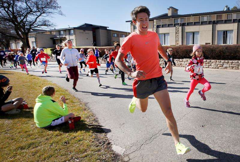Howard Grotts, after winning the men’s 5-mile race leads the Durango Running Club’s 1-mile Turkey Trot on Thanksgiving morning at Fort Lewis College. Photo Jerry McBride/Durango Herald