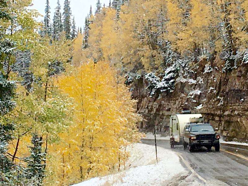 Drivers make their way down U.S Highway 550 toward Silverton Sept. 22 after light snow fell in the San Juan Mountains. Photo by Shaun Stanley/Durango Herald