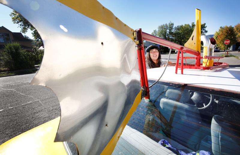 Ashley Garcia shows off her submarine car Sept. 18. She recently purchased the vehicle that was created by Richard Hudgins. Photo by Jerry McBride/Durango Herald