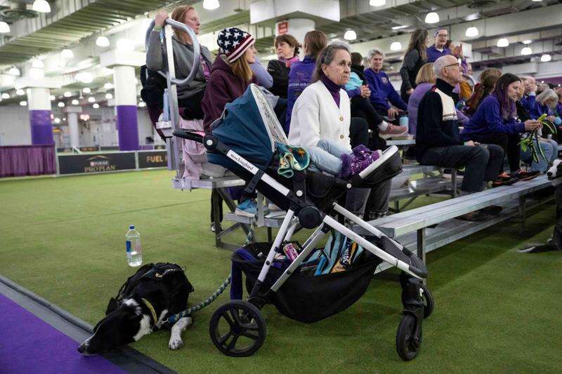 A dog waits to compete in the Masters Agility Championship Finals at the 150th Westminster Kennel Club Dog show, Saturday, Jan. 31, 2026, at the in New York. (AP Photo/Yuki Iwamura)
