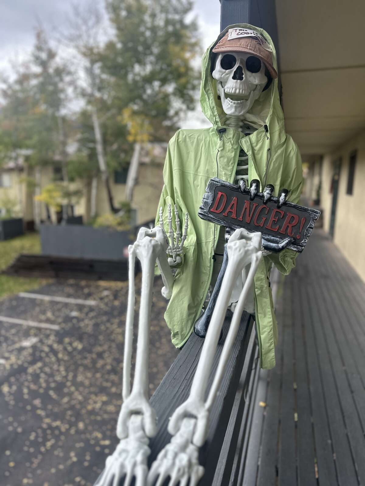 Skeleton Jeff is dressed for spooky flooding on north Florida Road. (Courtesy of Laura Spann)