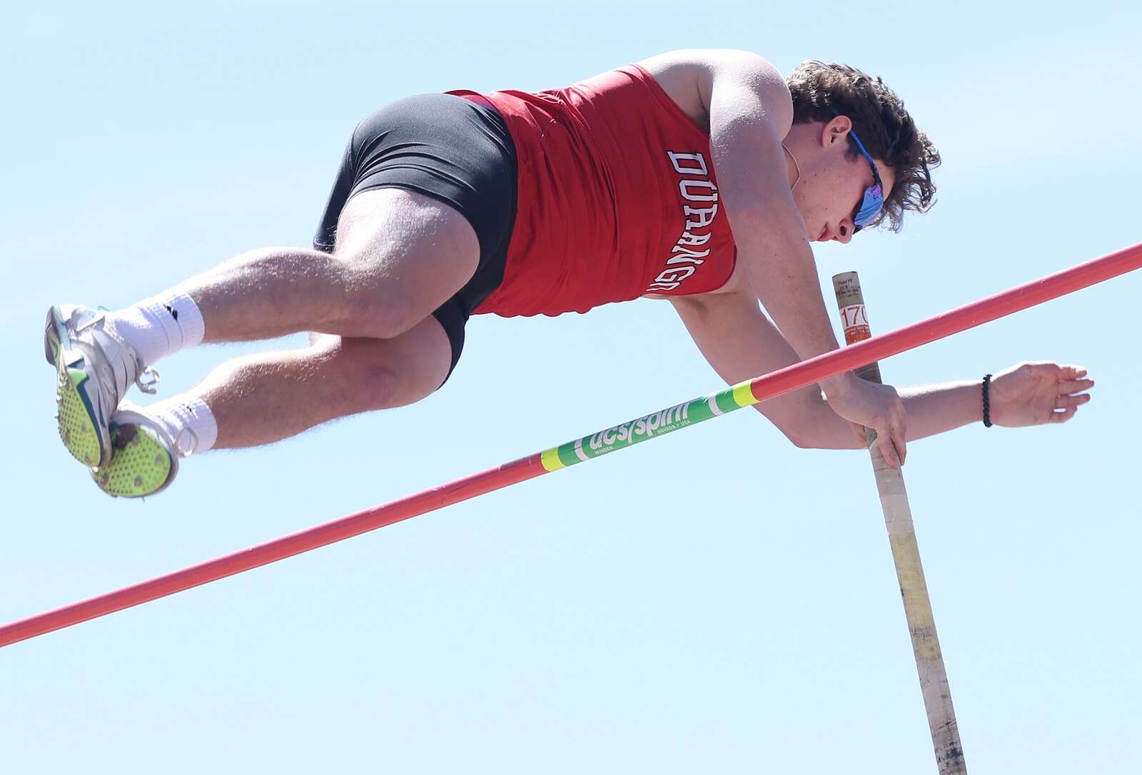 Grant Gordan of Durango High School clears 13 feet, eight inches on Saturday during the Ron Keller Invitational track meet at DHS. (Jerry McBride/Durango Herald)