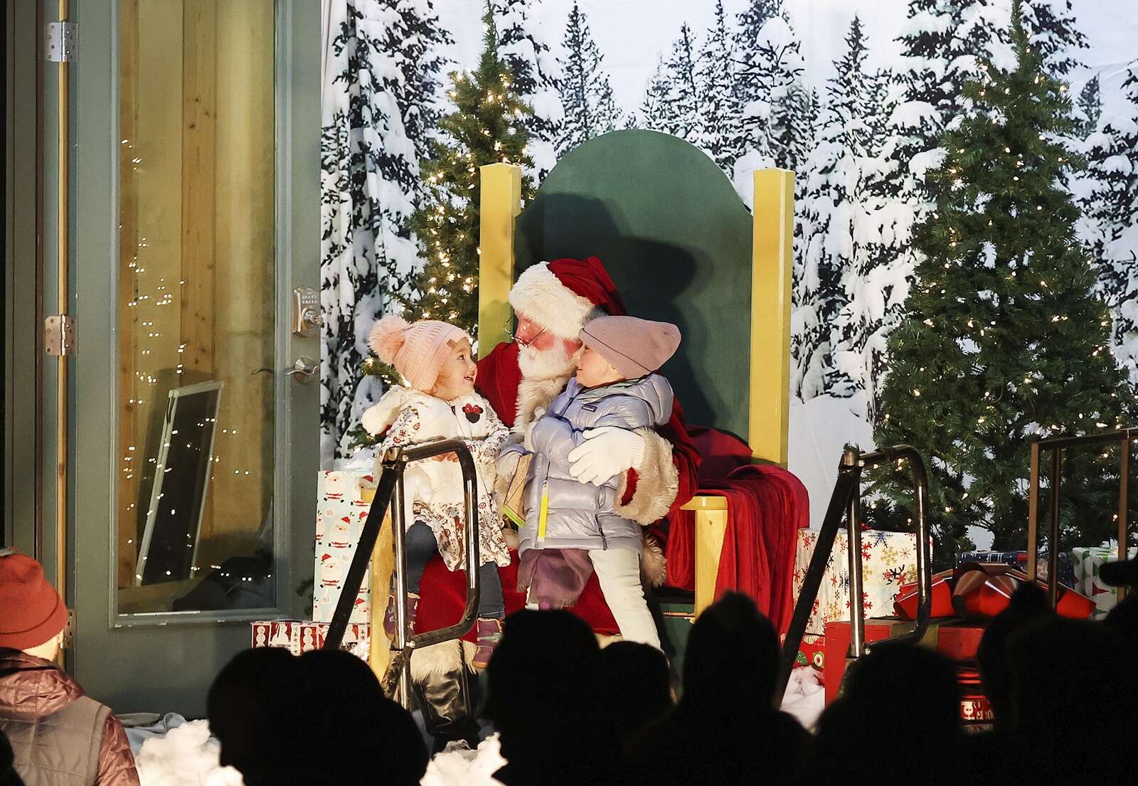 Santa Claus visits with children during the Singing with Santa event on Friday in Buckley Park. Hundreds attend the annual event that is put on by the Durango Business Improvement District. (Jerry McBride/Durango Herald)