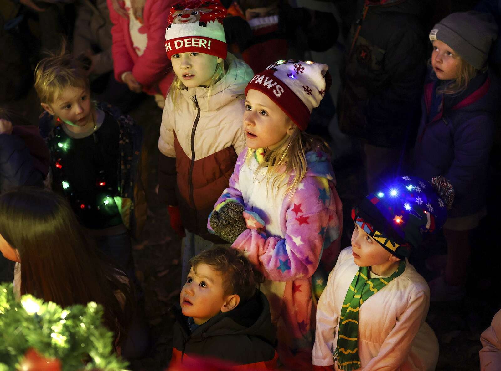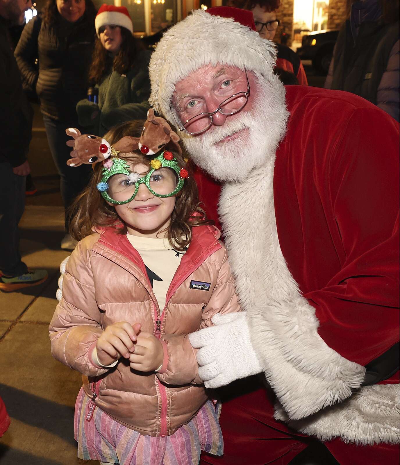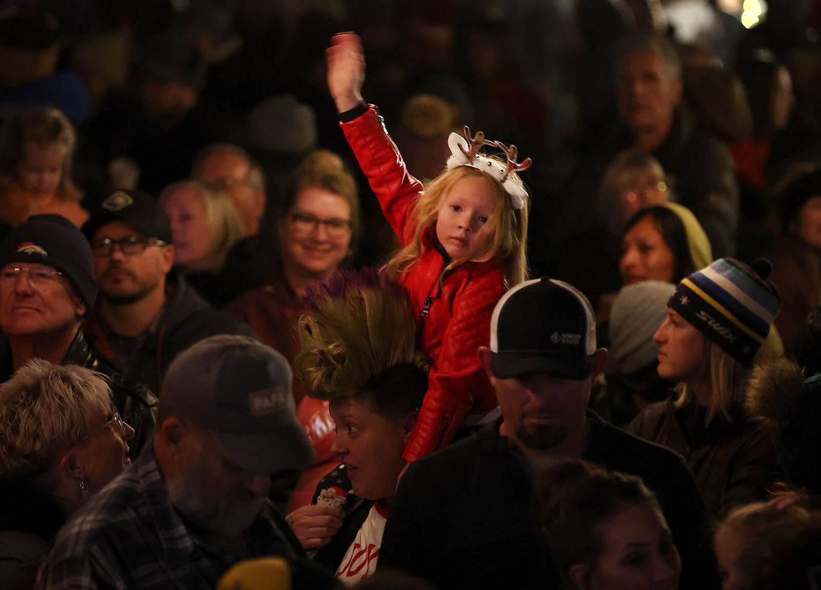 After Santa Claus sang Christmas carols during the Singing with Santa event on Friday, the crowd in Buckley Park counted down from 10 before flipping the switch on the Community Christmas Tree that is covered with 1,750 lights. Hundreds attend the annual event that is put on by the Durango Business Improvement District. (Jerry McBride/Durango Herald)