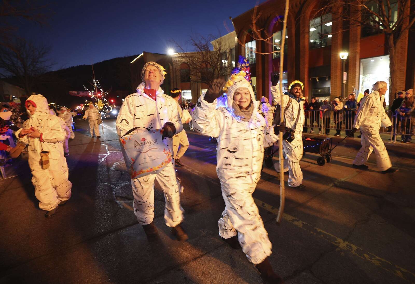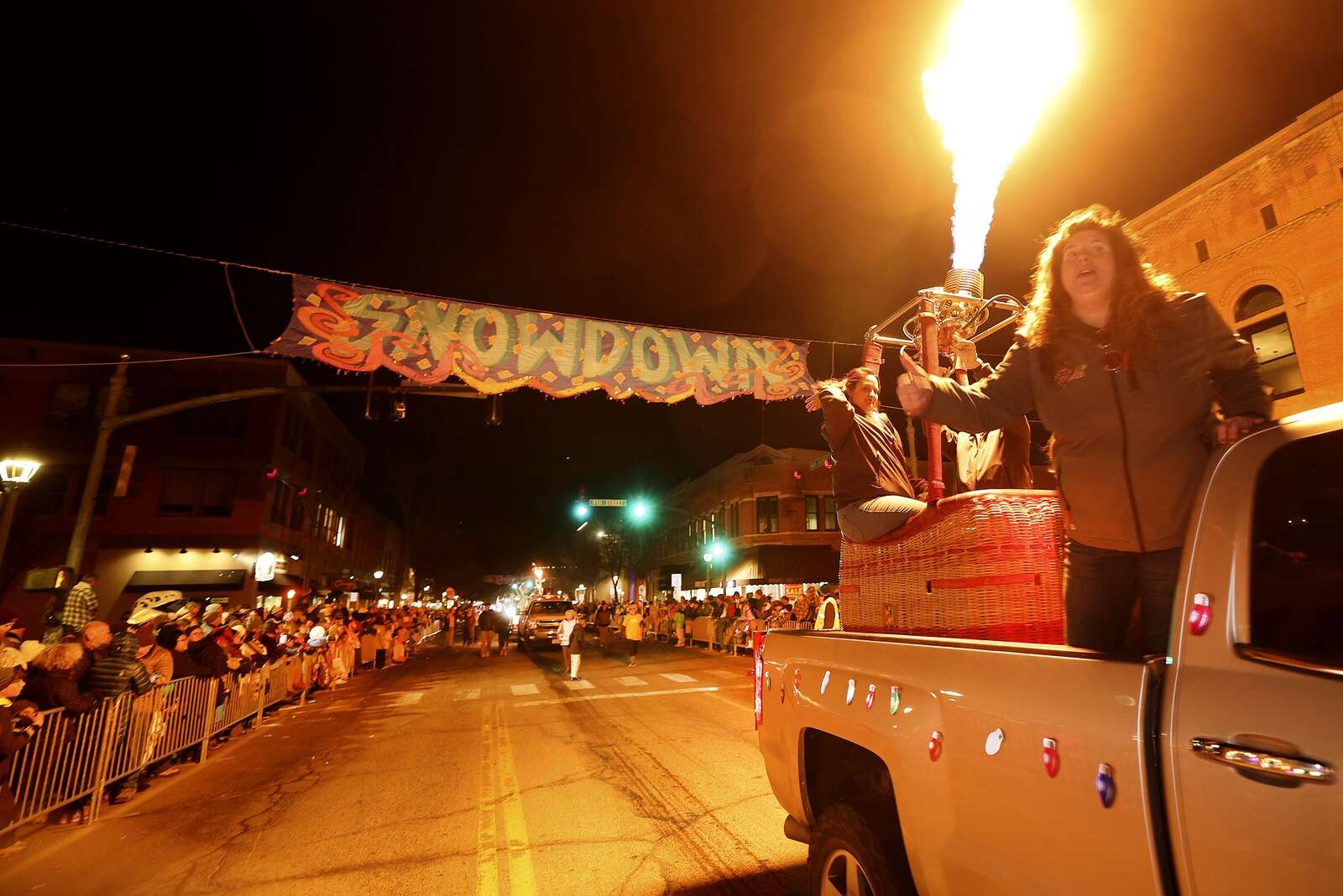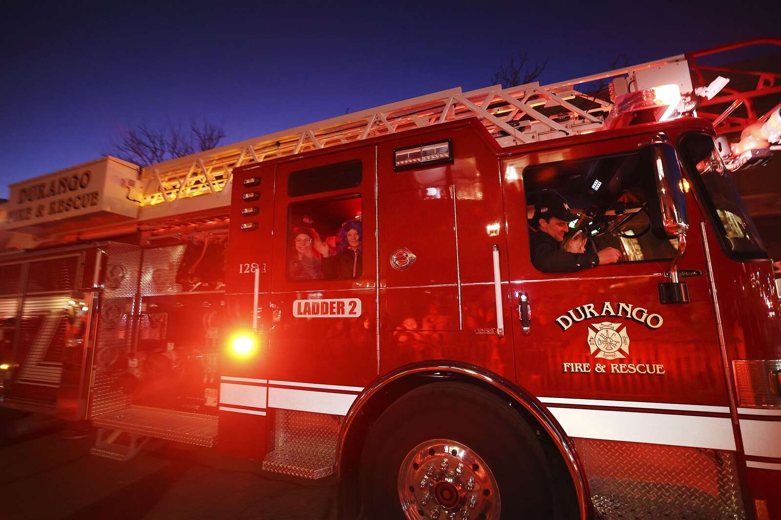 Sidewalks were filled with people in downtown Durango to watch the Snowdown Light Parade 2026 on Friday go up Main Avenue. (Jerry McBride/Durango Herald)