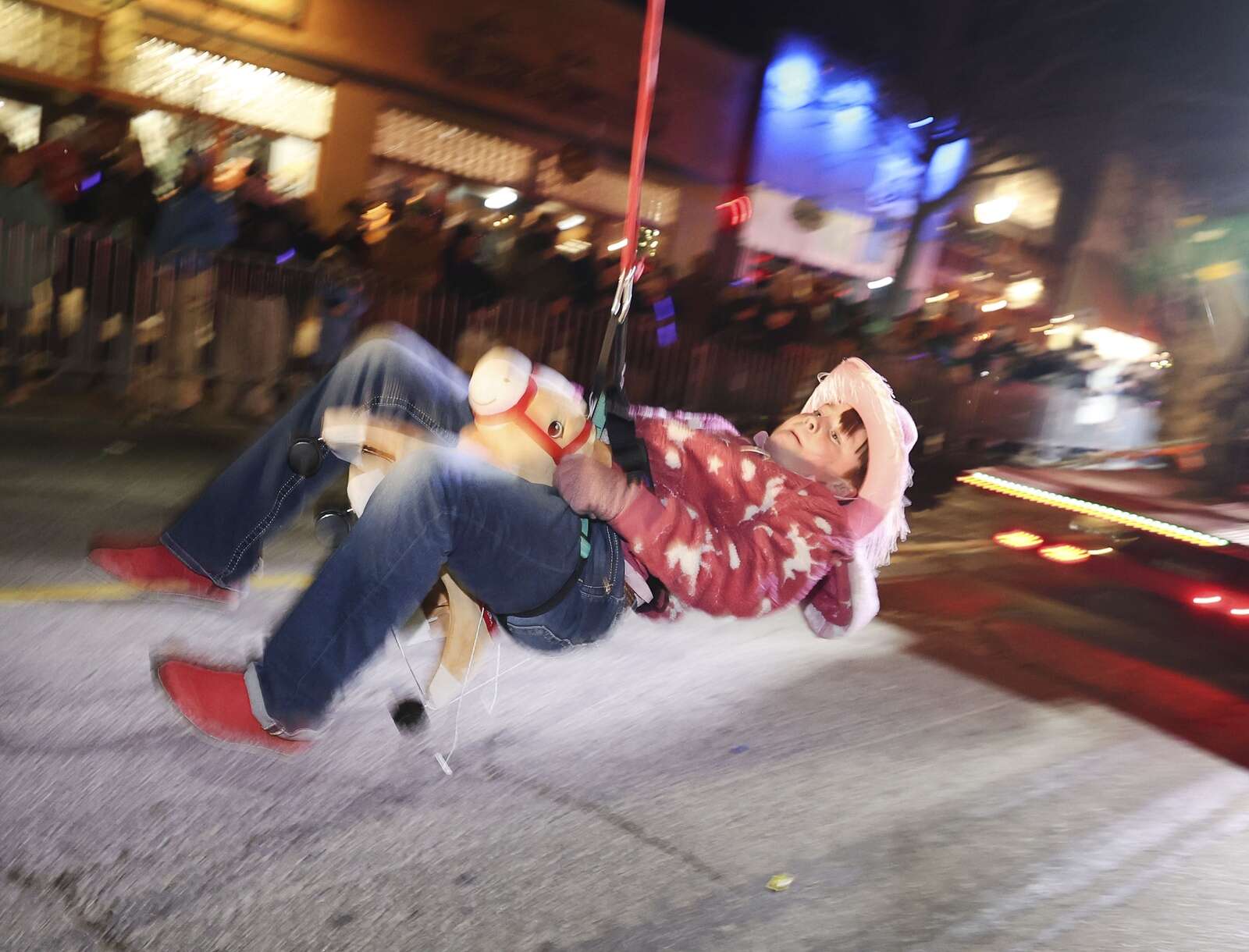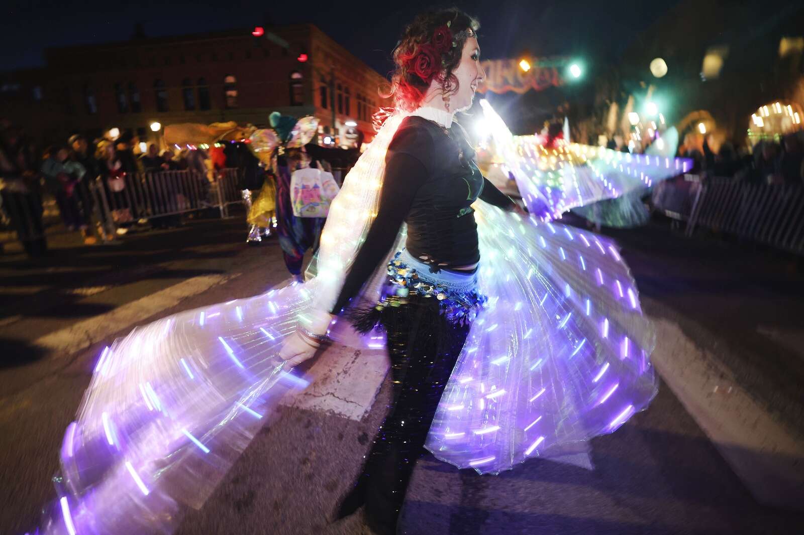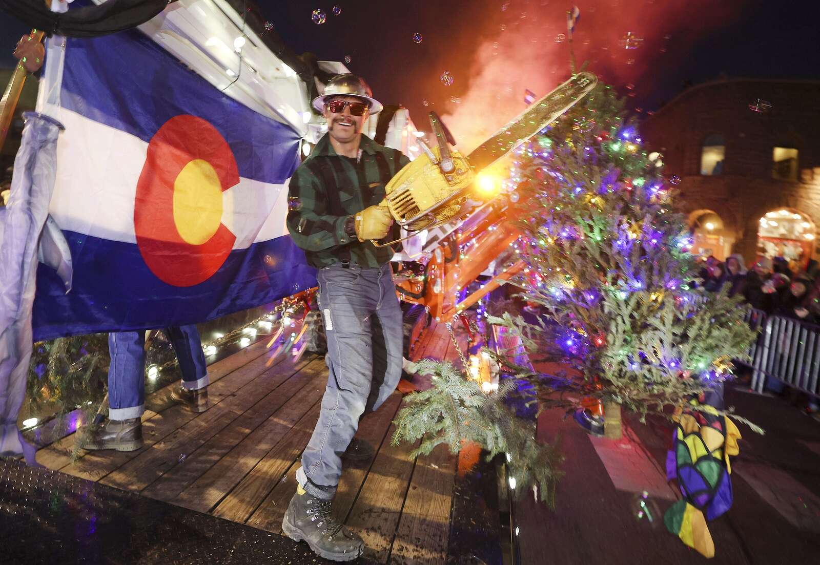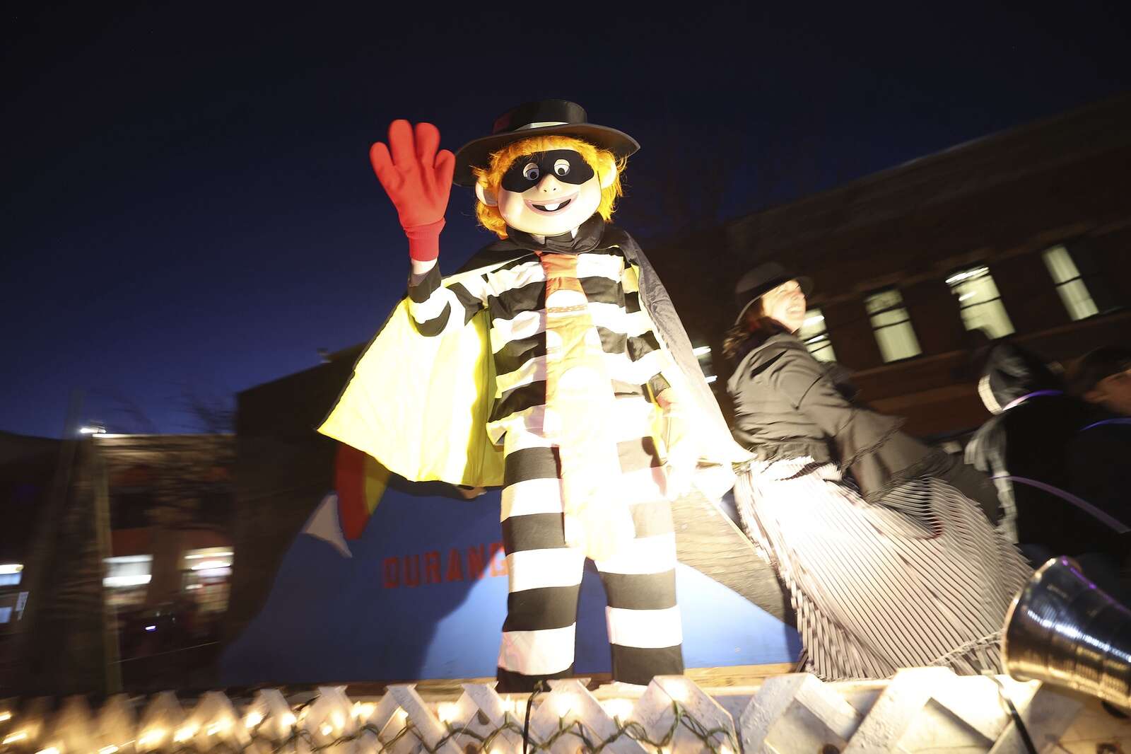 Sidewalks were filled with people in downtown Durango to watch the Snowdown Light Parade 2026 on Friday go up Main Avenue. (Jerry McBride/Durango Herald)