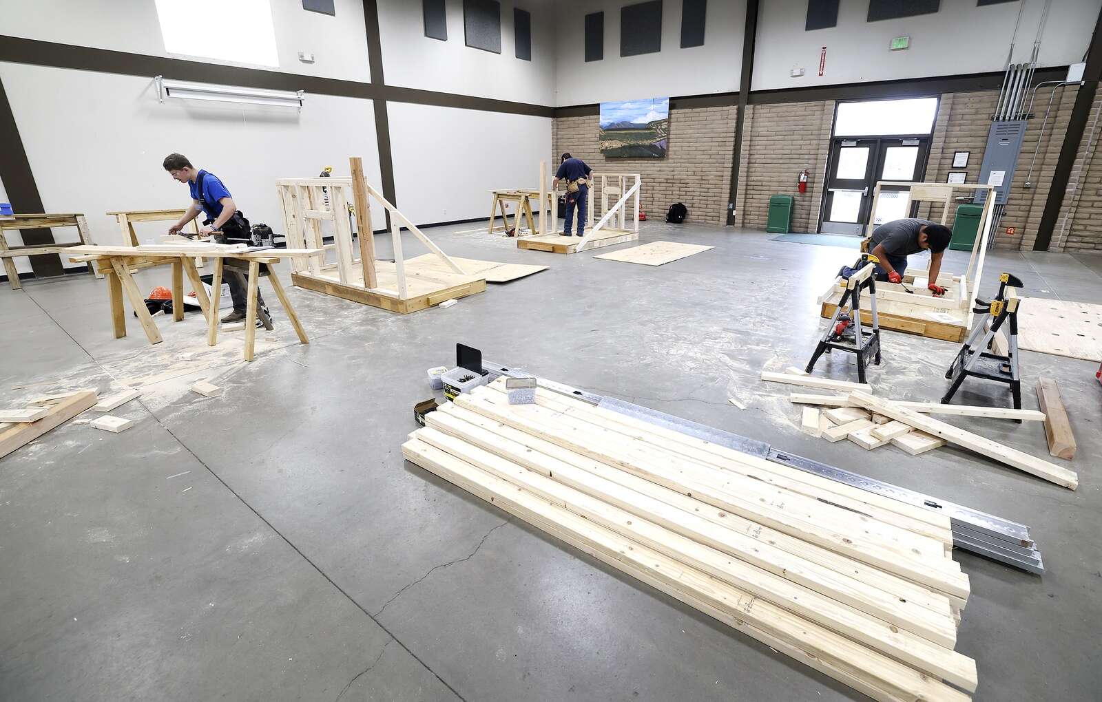 Students compete in the Region 8 SkillsUSA Competition – Carpentry Division on Friday building a shed in the Exhibit Building at the La Plata County Fairgrounds. Students from area high schools participated in building cabinets, framing a shed and welding. The top two winners of each category will move on to state and national competitions. (Jerry McBride/Durango Herald)