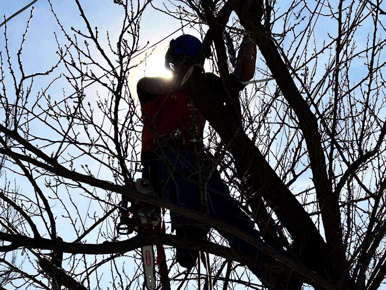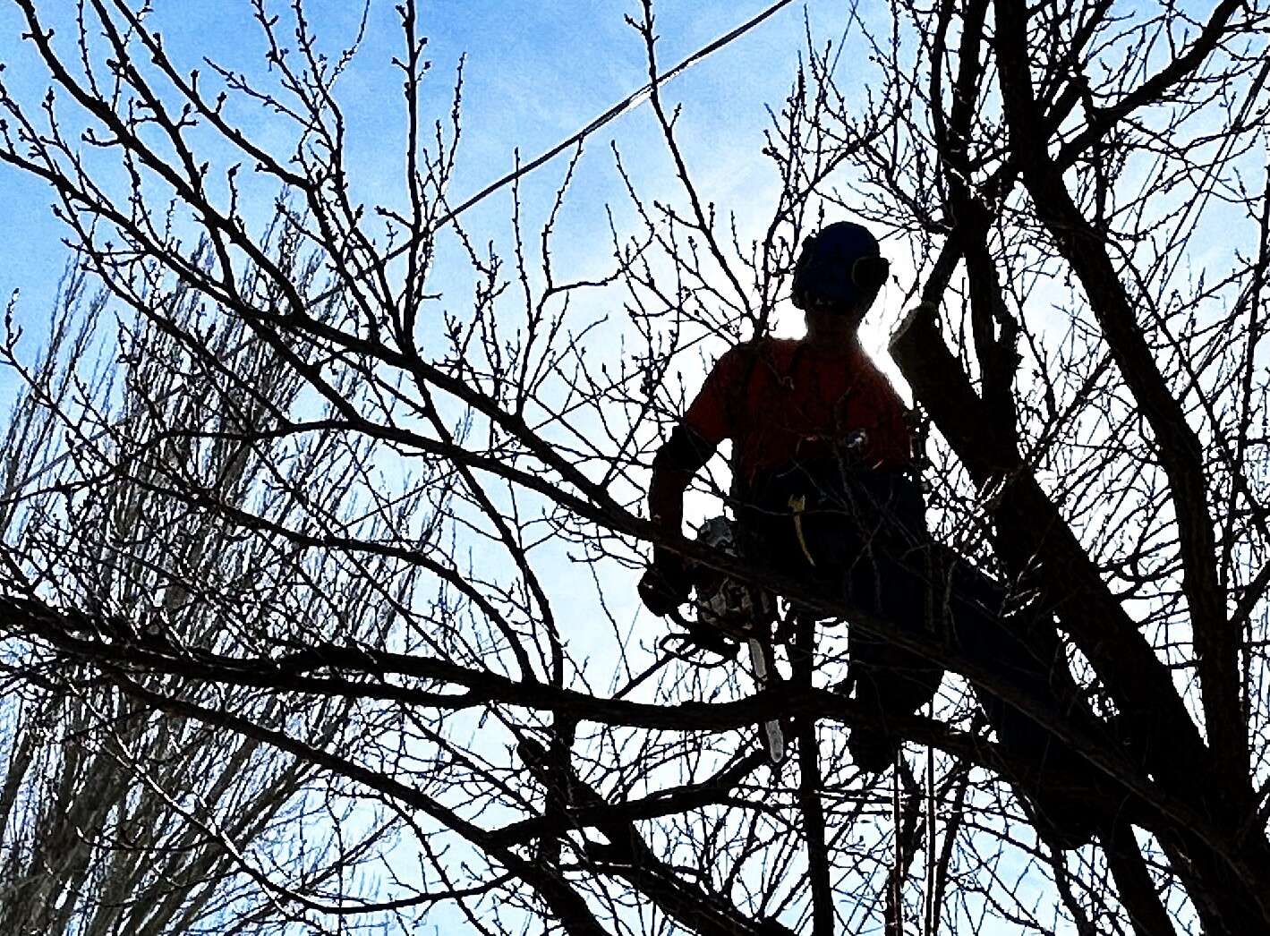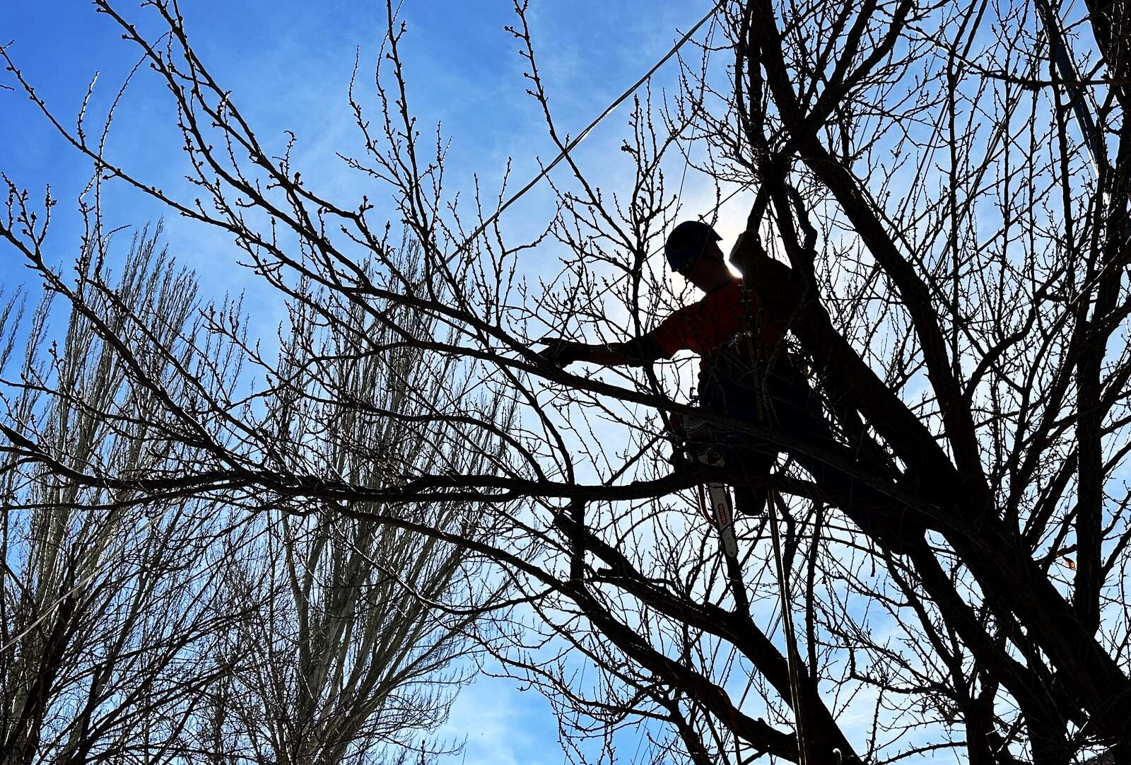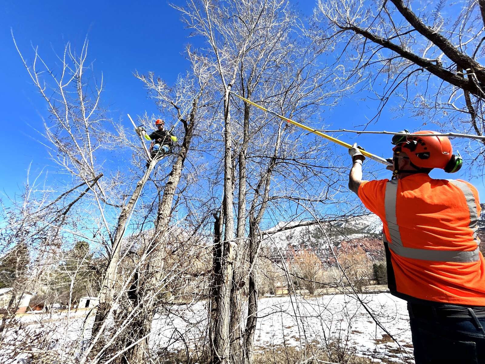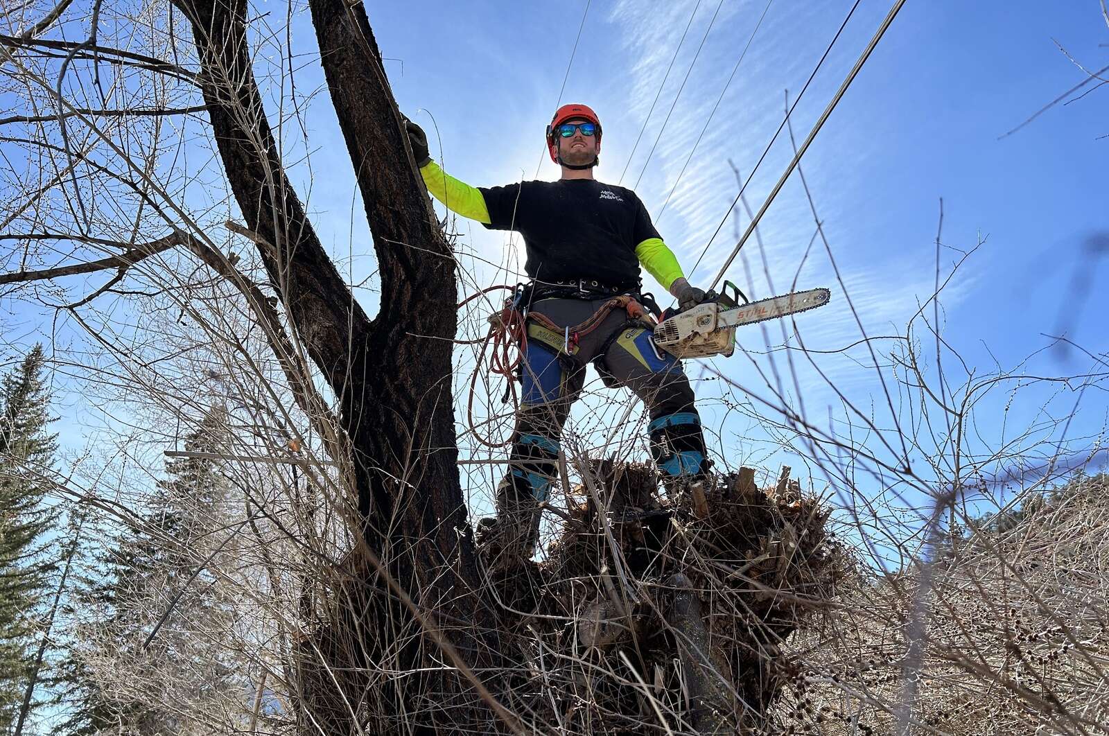 Tom Palmer with Woodchuck Tree Service trims a tree Tuesday along County Road 203. (Shane Benjamin/Durango Herald)