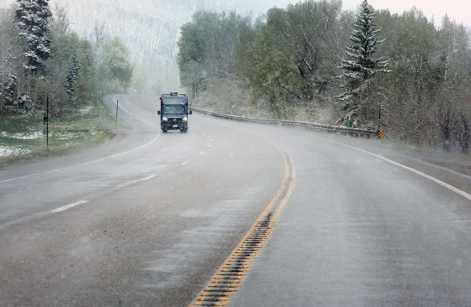 Graupel falls south of Durango on Tuesday morning. (Jerry McBride/Durango Herald)