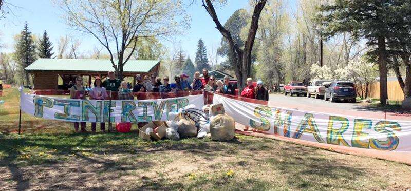 For Earth Day on Saturday, April 22, Pine River Shares volunteers gathered trash, offered "freecycle" clothing and enjoyed a cookout in Eagle Park. Shown here are some of the bags of trash collected for Earth Day.