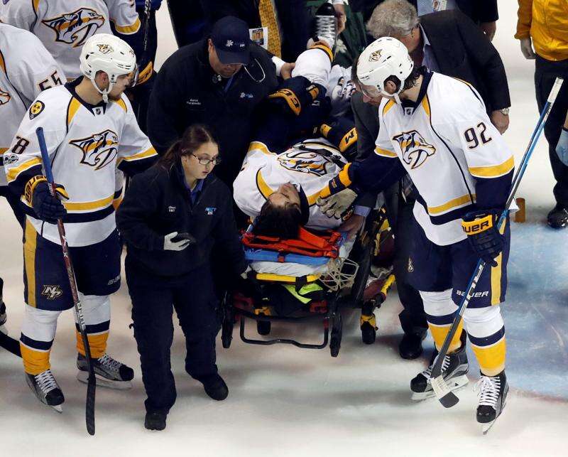 After the delay for Fiala’s injury and the arrival of a second ambulance at the arena, Subban drove a shot by Allen from the right circle for his first of the playoffs at 2:22. Ryan Johansen picked up the assist after the Blues were unable to clear the puck from the defensive zone.