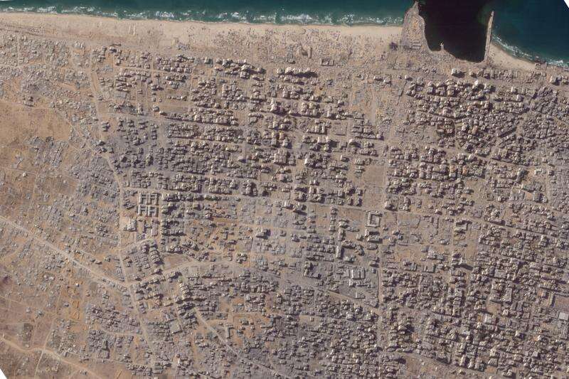 In this satellite photo from Planet Labs PBC, a portion of Gaza City, Gaza Strip, is seen Saturday, Oct. 11, 2025. (Planet Labs PBC via AP)