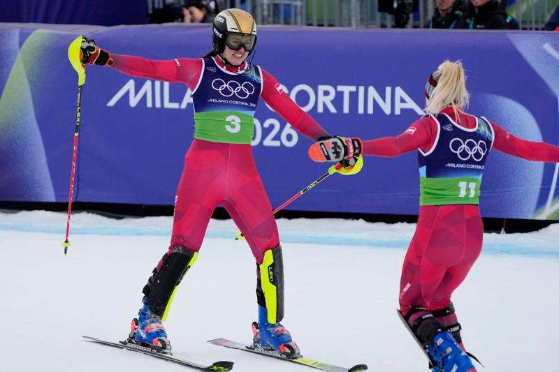 CORTINA D'AMPEZZO, Italy (AP) — Ariane Raedler and Katharina Huber of Austria won gold in the new team combined event at the Milan Cortina Olympics on Tuesday when Mikaela Shiffrin surprisingly crossed fourth after wasting a first-run lead by teammate Breezy Johnson.