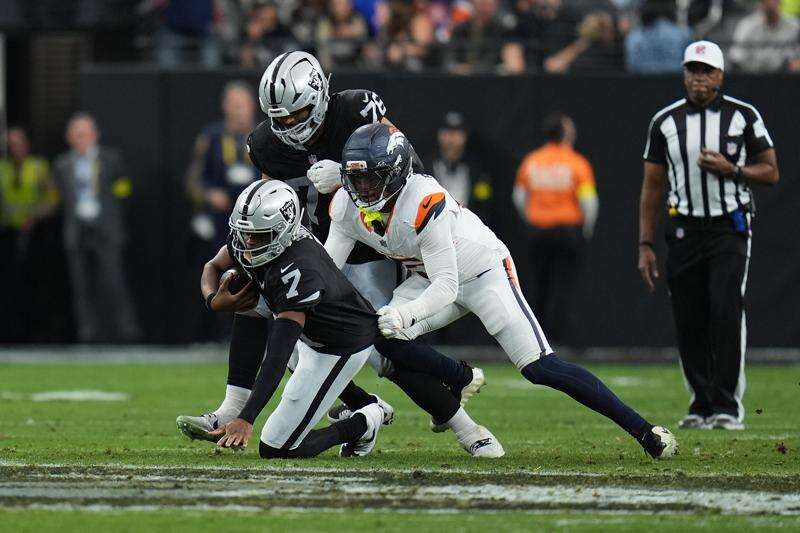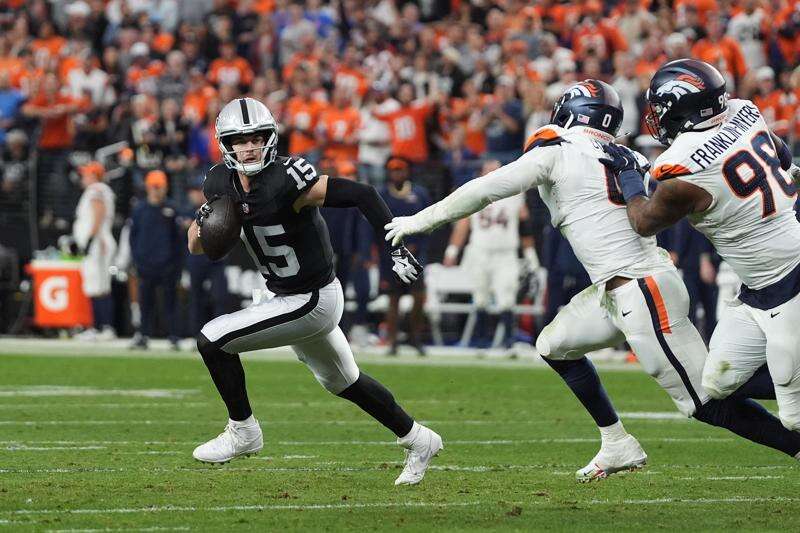 HENDERSON, Nev. (AP) — Raiders quarterback Geno Smith did not practice Wednesday because a shoulder injury, placing his status for Sunday's game at Philadelphia in question.