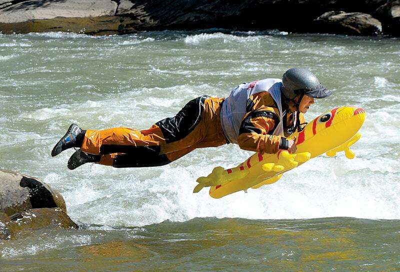 Nancy Murbach of Scottsdale, Ariz., said she grew up in California surfing on anything that would float and decided to put those skills to use Saturday during the Animas River Days kayak rodeo at Santa Rita Park.