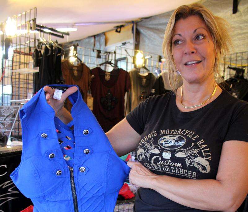 "It's pretty much volunteers," she said of the rally workers. "There's really good kharma here." The native of Queens, N.Y. sells custom bike clothing and makeup that doesn't wear off during a long ride.