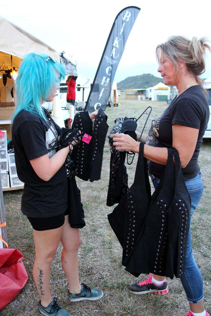 "This is my favorite rally," said Christine Lake of Bika Chic as she set up her booth on Wednesday evening. Last year, she and her husband had engine problems on Wolf Creek Pass and coasted in to Ignacio. Rally staff and volunteers helped them get their engine fixed, and she had a successful weekend here.