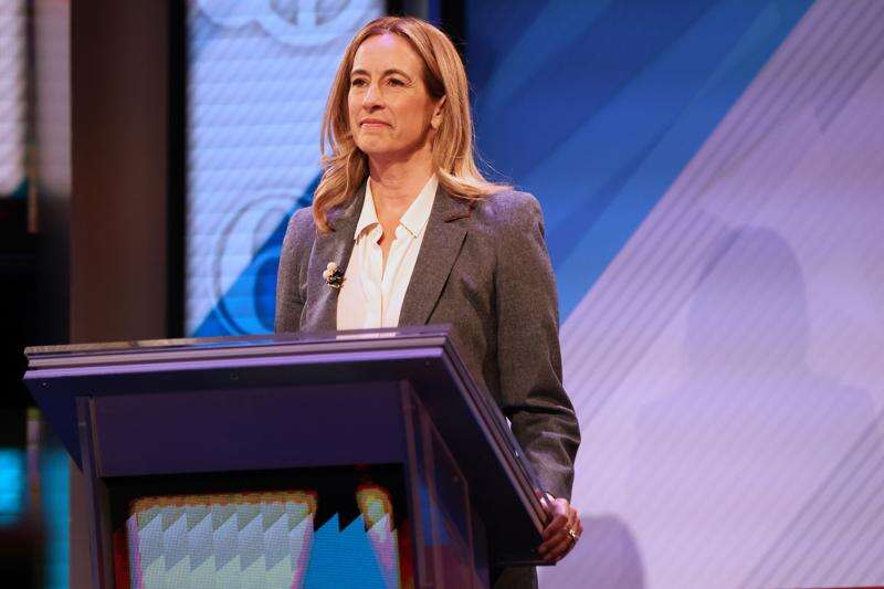Democrat Mikie Sherrill participates in the final debate in the New Jersey governor's race with Republican Jack Ciattarelli, Wednesday, Oct. 8, 2025, in New Brunswick, N.J. (AP Photo/Heather Khalifa)