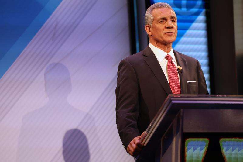 Republican Jack Ciattarelli speaks during the final debate in the New Jersey governor's race with Democrat Mikie Sherrill, Wednesday, Oct. 8, 2025, in New Brunswick, N.J. (AP Photo/Heather Khalifa)