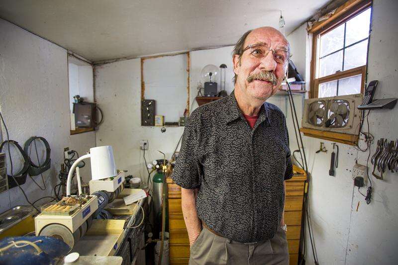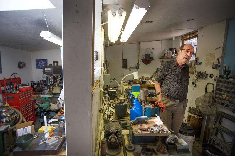 Robert Scott speaks about his career as a jewelry maker, and clock and watch repairman from within his jewelry and metal shop on County Road 240. Photo by Shaun Stanley/DurangoHerald