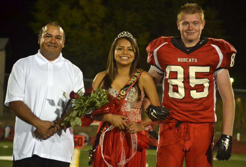 Ignacio Homecoming Queen 2015 Cortney Wilson-Baker, center, stands with father Jacob Baker (left) and Homecoming King Austin McCaw (85) at IHS Field during halftime of the Bobcats' football game versus Walsenburg John Mall. The queen's mother is Delilah Wilson; the king's parents are Ed and Kelly McCaw. For more Homecoming coverage, see Sports inside this edition.