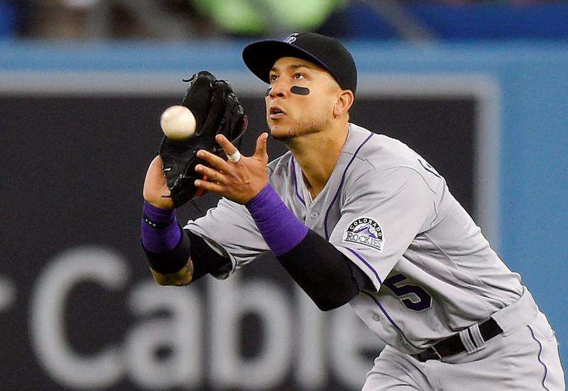 The Rockies broke through against Maeda in the seventh. Gerardo Parra stroked a one-out double for Colorado’s first extra-base hit of the game, and Descalso brought him home with a sinking two-out liner that dropped just in front of charging center fielder Trayce Thompson for an RBI single.