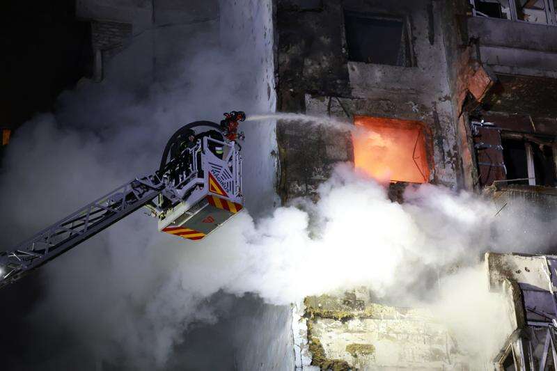 KYIV, Ukraine (AP) — A major Russian drone and missile attack on civilian areas of Ukraine killed six people and injured at least 46, officials said Tuesday, while Moscow’s army stepped up efforts to break through Ukrainian front-line defenses in what could be the start of an anticipated spring ground offensive.