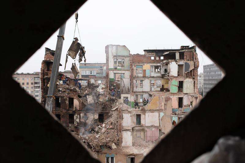 Emergency services say 13 people are still unaccounted for after the attack crushed the top floors of apartment blocks and started fires.