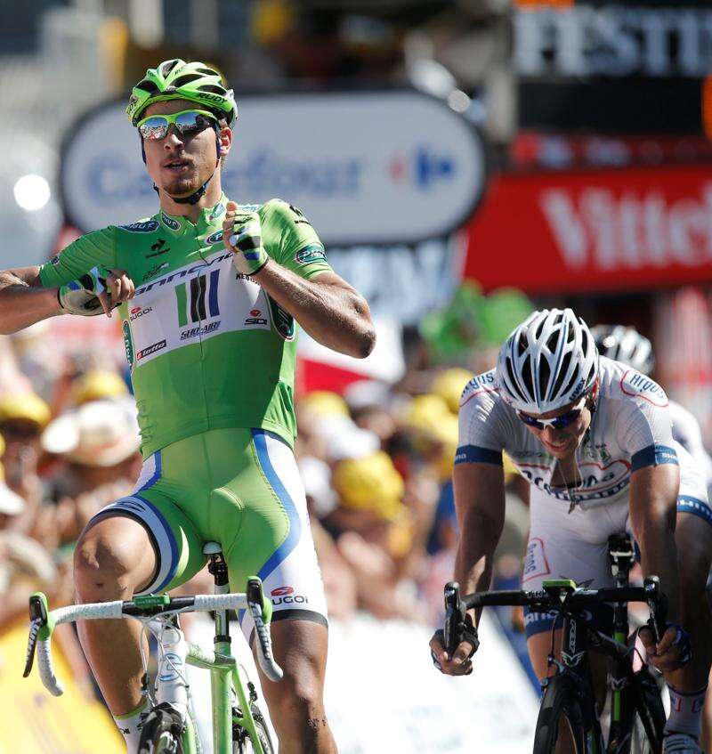Sagan held off John Degenkolb of Germany to capture his first stage victory in this year’s Tour, taking a big lead in his bid to defend the green jersey as top sprinter. Italy’s Daniele Bennati finished the stage in third.