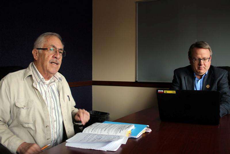 Gerardo Sanchez, left, of Ignacio, meets with John Whitney of Sen. Michael Bennet's office on Monday at the Ignacio Community Library. Whitney, who is Bennet's regional director for the Western Slope, said there was a steady stream of constituents who met with him Monday to discuss various issues.