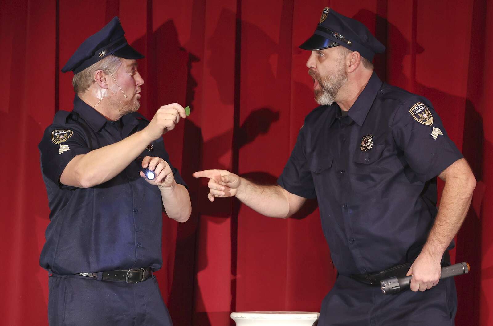 Act II said goodbye to emcees Bill and Ted and hello to Durango Police officers Medium Rare and SUSS (Wesley Ruggles and Andy Rude), who were on the case in search of a missing book vital to the Snowdown Follies.