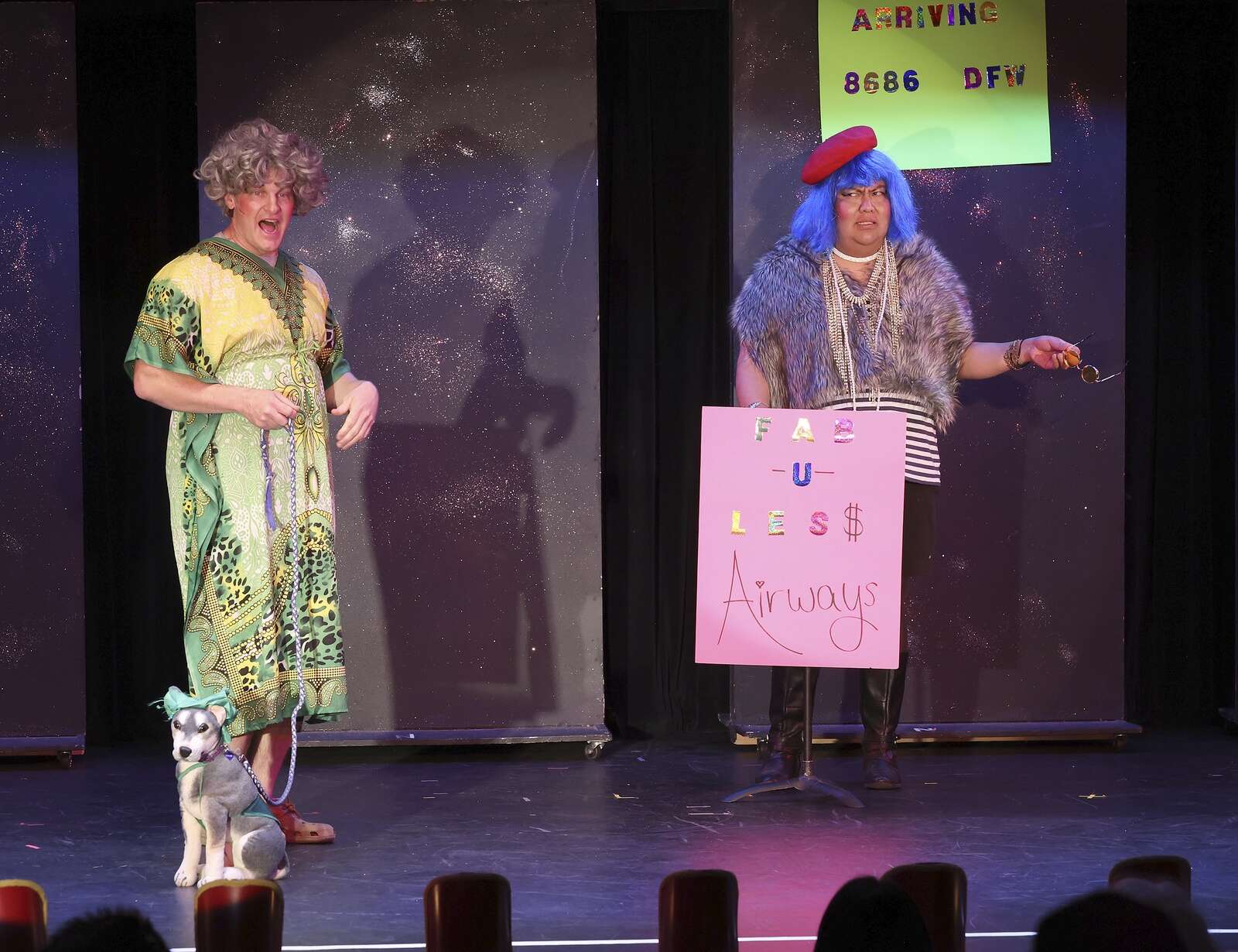 So began the 42nd year of the Snowdown Follies. Bill and Ted (Sophie Horelick and Dave Imming) kicked off the show Thursday night at Durango Arts Center by using their trusty telephone booth (remember those?) to take the audience back and forth in time, including mentioning some old downtown bars, which got us feeling really, really old, and brought back the terrible memory of too many Irish Car Bombs at Lady Falconburgh’s ... but we digress. We also got some new pop-culture references and a nod to the infamous “Horse Guy,” the famous downtown kangaroos and the Vallecito hot tub, which made news during the October floods.