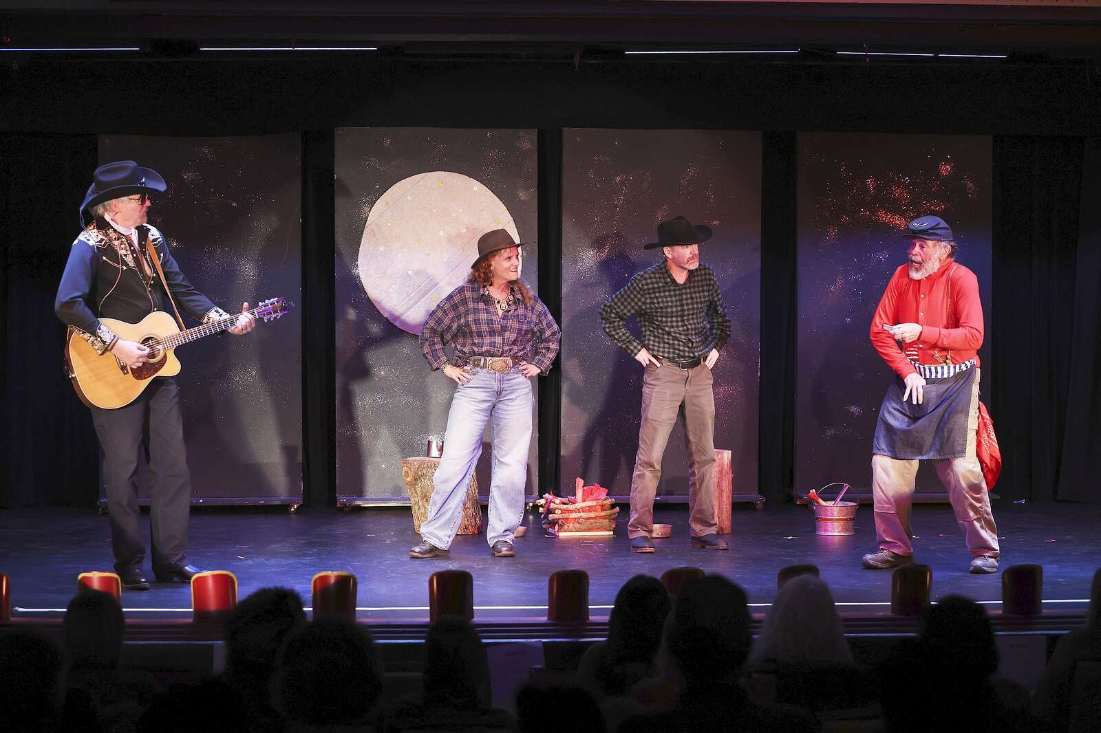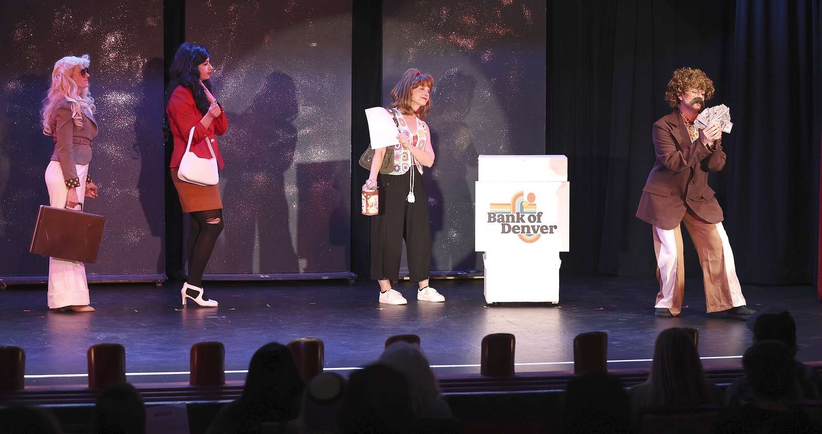 Act I took the audience through a wide span of Colorado history – this year’s Snowdown theme is “Uniquely Colorado – Then and Wow,” after all. There was a chuck wagon with a super-catchy song, courtesy of Derek Ryter, Penney Sutcliffe Stahl, Floyd Dingman and Danny Jaques; and women’s empowerment funded by “polyester, pantyhose and estrogen,” featuring Donna Middleton, Rochelle Park, Monserrat Poceno and Sarah Ripley, as well as the ladies of “Hard Knock Wife” – Rachel Frederico, Mindi Kondrat, Amy Aweida and Kimi Hanson – getting their Women’s Lib on.